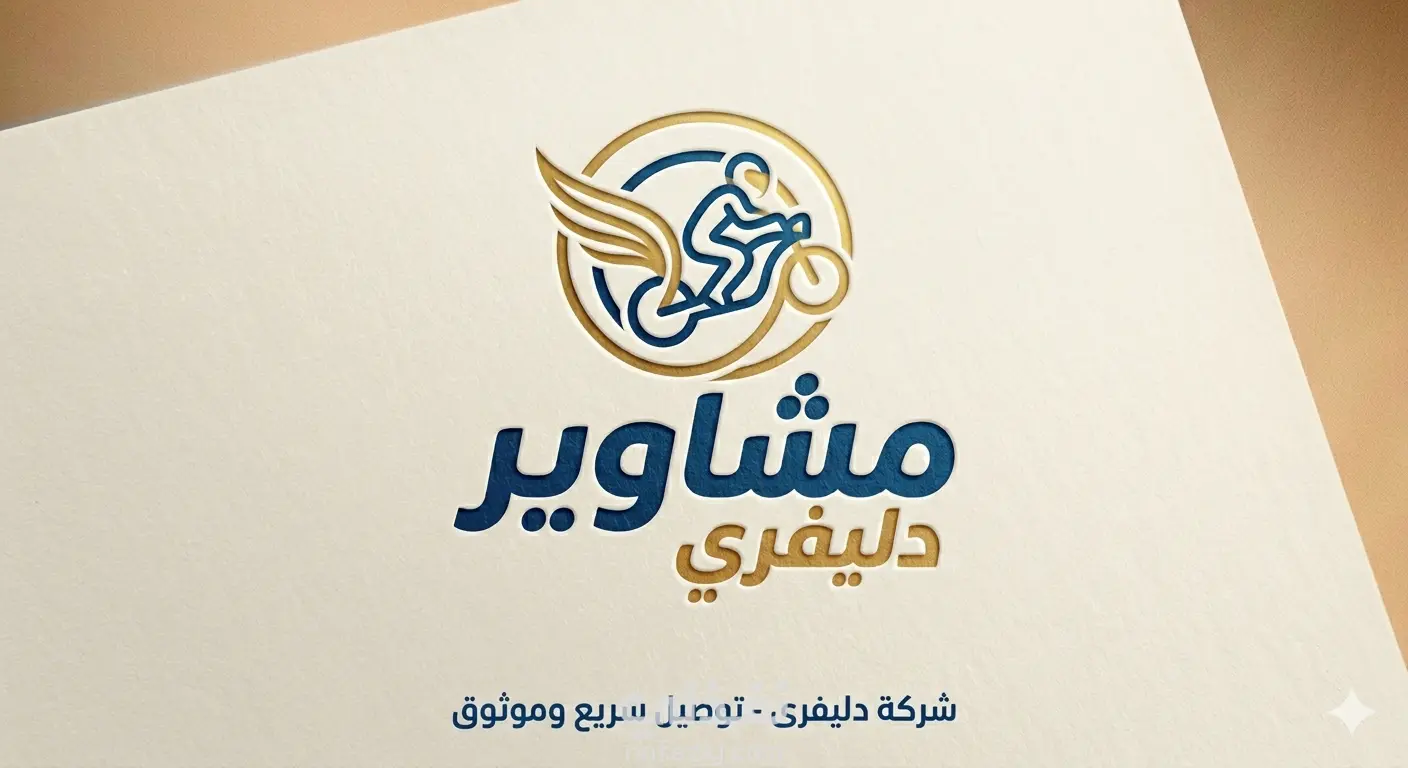 تم تصميم الهوية البصرية لعلامة "مشاوير دليفري" لتعكس القيم الجوهرية للعلامة التجارية: السرعة، الموثوقية، والعصرية. يعتمد الشعار على أسلوب "التميمة" (Mascot Logo) من خلال شخصية المندوب على الدراجة النارية، مما يخلق رابطاً بصرياً فورياً مع طبيعة الخدمة.