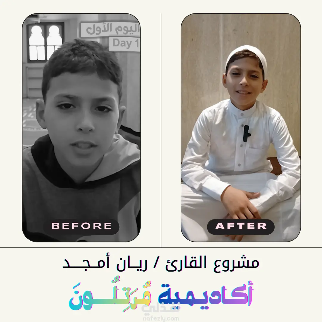 أرفق لكم نموذجًا من قبل التدريب وبعده لتلاوة الطالب ريان ، ليظهر الفرق بوضوح.