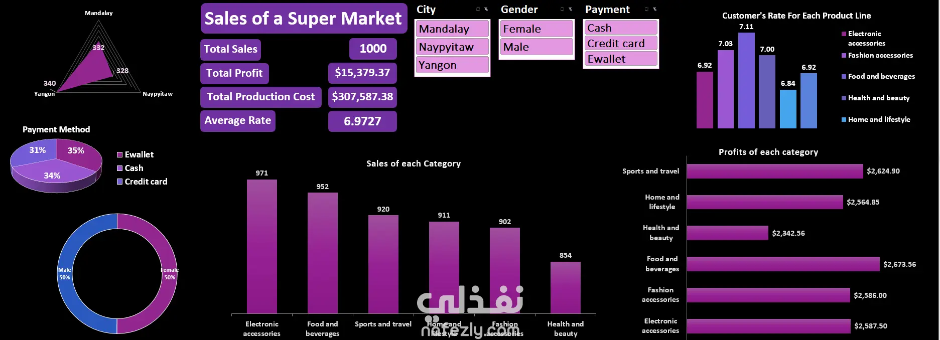 تنظيف البيانات واستكشافها ثم تنظيمها في Pivot tables وإنشاء الـ Slicers المختلفة لفلترة البيانات المراد عرضها في الأشكال البيانية وتجميعها في داشبورد. وتم العمل على مشاريع مختلفة بهذه الاستراتيجية لبناء داشبورد تفاعلية قوية. البرنامج المستخدم: Excel