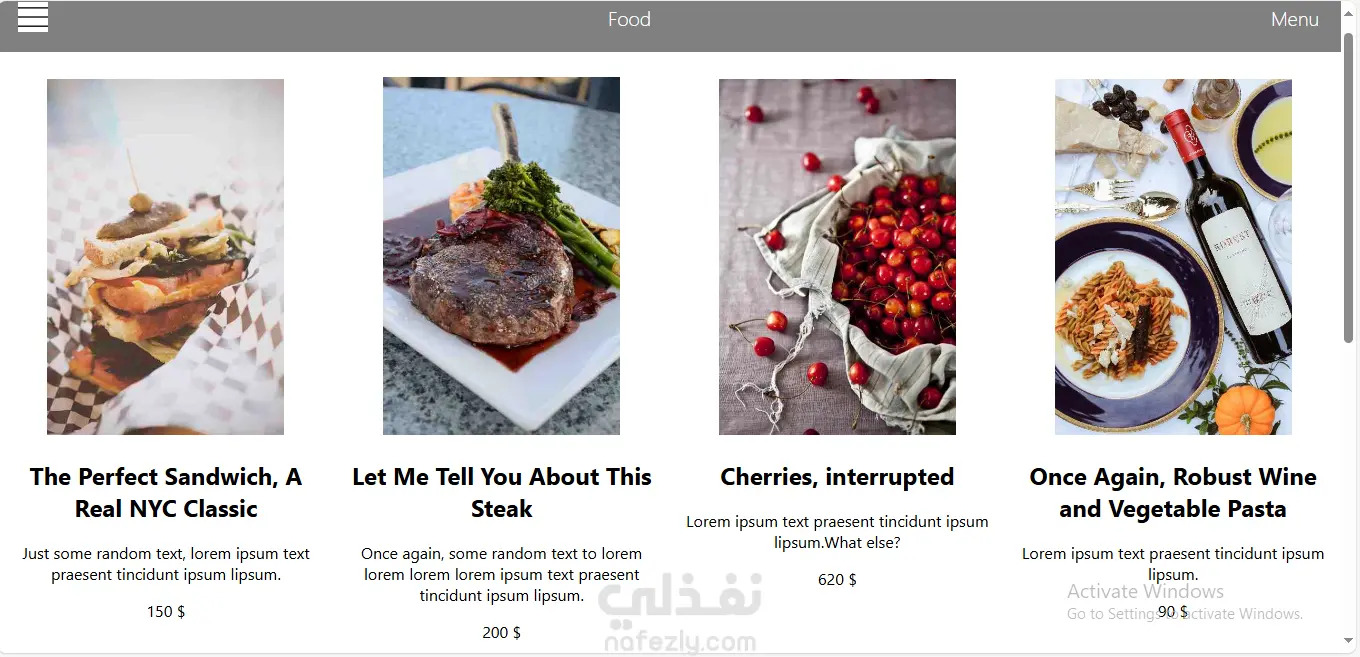 موقع لمطعم معرفة الاسعار والاصناف والمكونات الخاصة بكل صنف