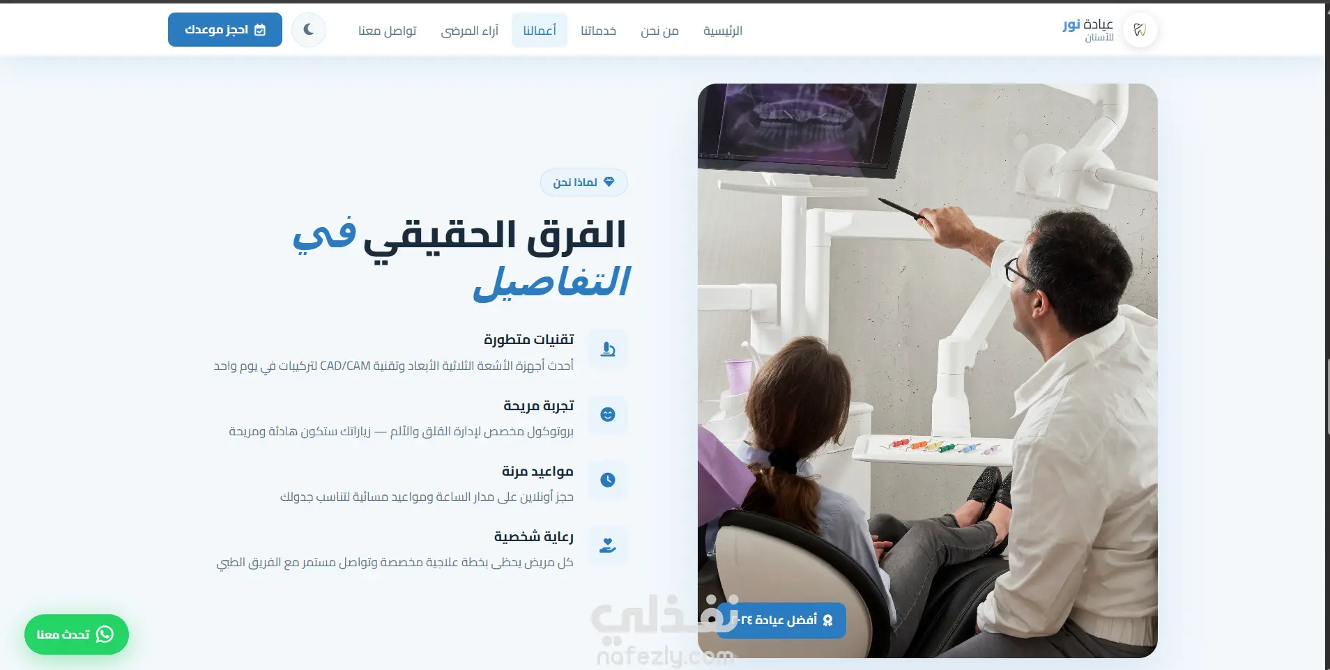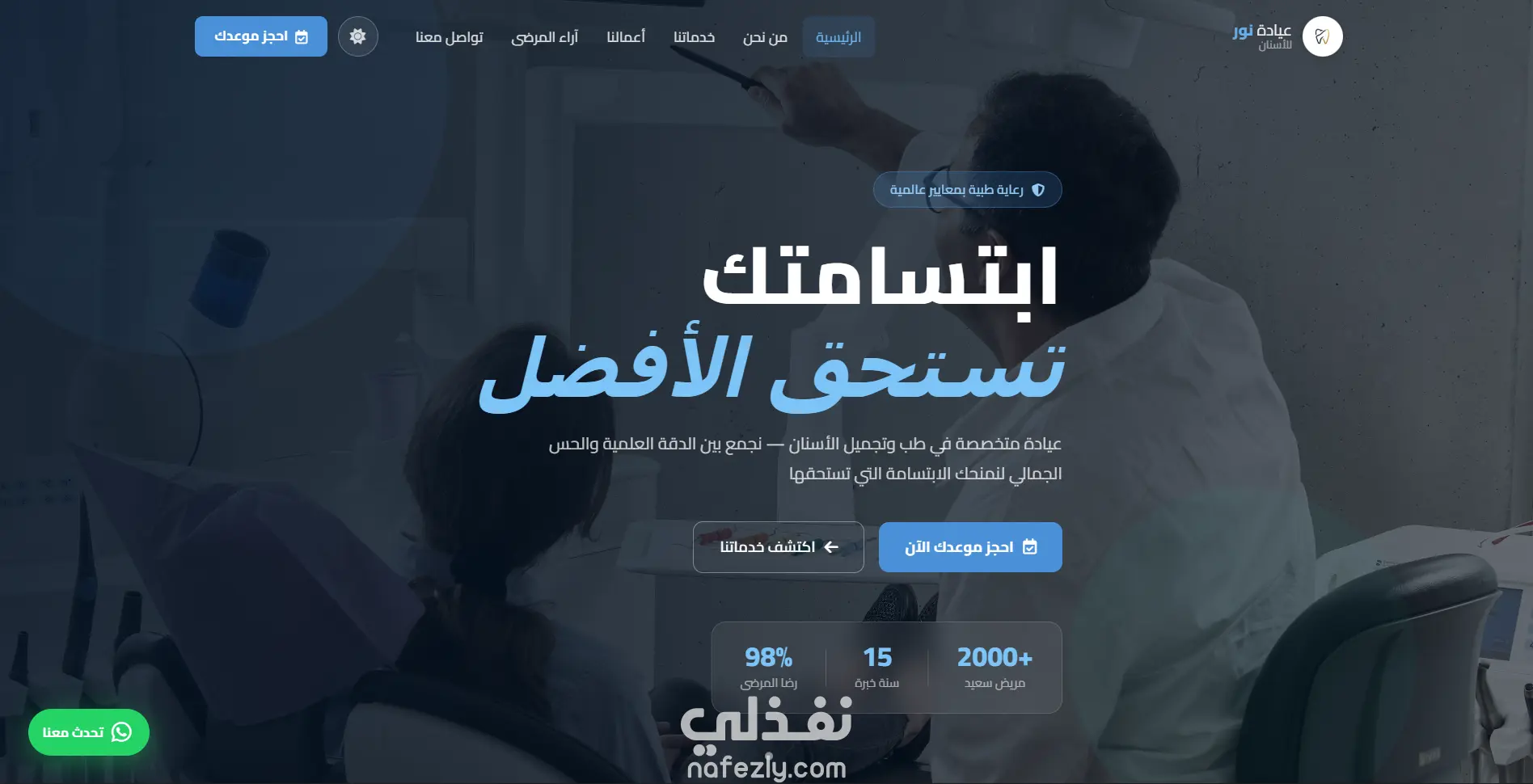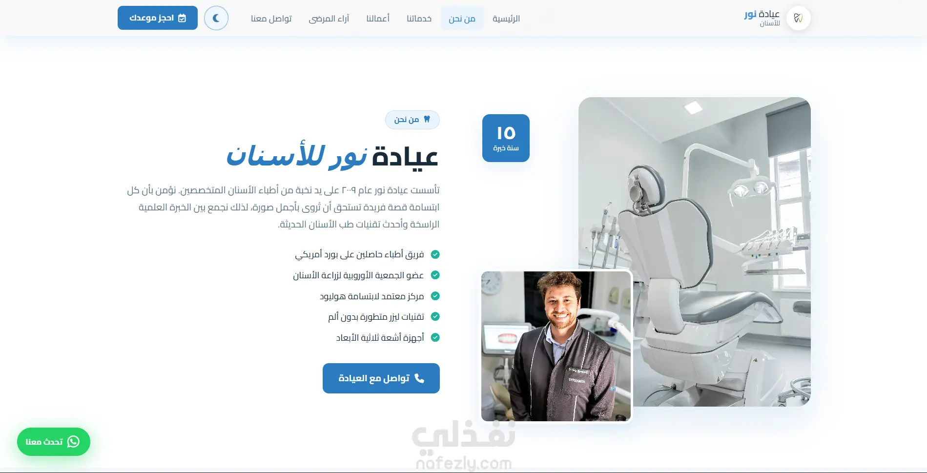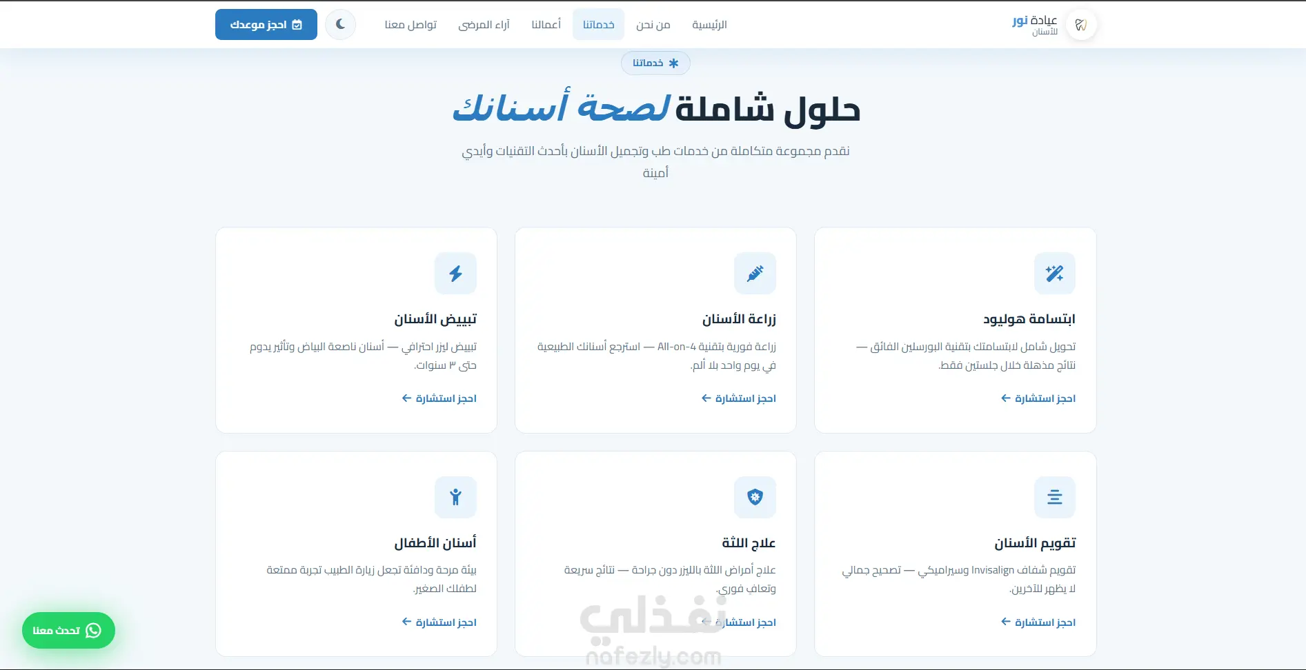 تم تصميم موقع لعيادة طبية بشكل عصري وجذاب يعكس احترافية العيادة ويساعد في جذب المرضى بسهولة. الموقع عبارة عن Landing Page متكاملة بتعرض خدمات العيادة بشكل واضح ومنظم، مع تصميم مريح للعين وسهل التصفح على جميع الأجهزة (موبايل / كمبيوتر). مميزات الموقع: تصميم حديث ومتجاوب مع كل الشاشات عرض خدمات العيادة بطريقة جذابة وواضحة قسم تعريفي عن العيادة أو الأطباء زر تواصل مباشر عبر واتساب ربط بالسوشيال ميديا سرعة تحميل ممتازة وتجربة مستخدم سلسة تصميم يساعد على بناء الثقة مع الزائر الموقع مناسب لأي عيادة أسنان عايزة يكون ليها وجود قوي أونلاين بشكل احترافي وبسيط في نفس الوقت.