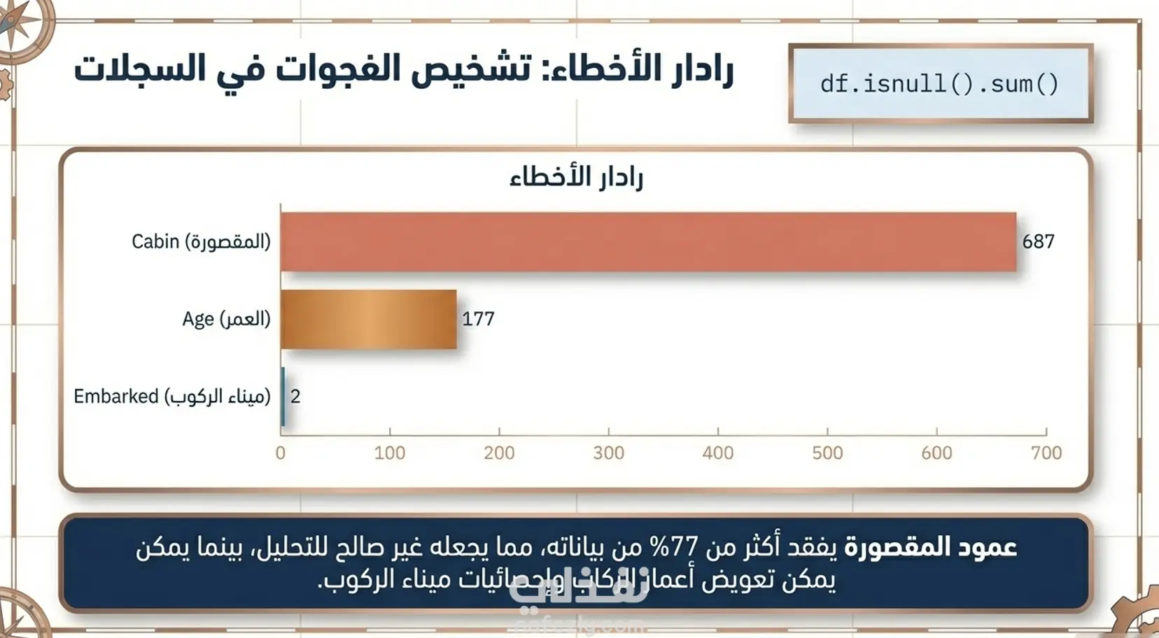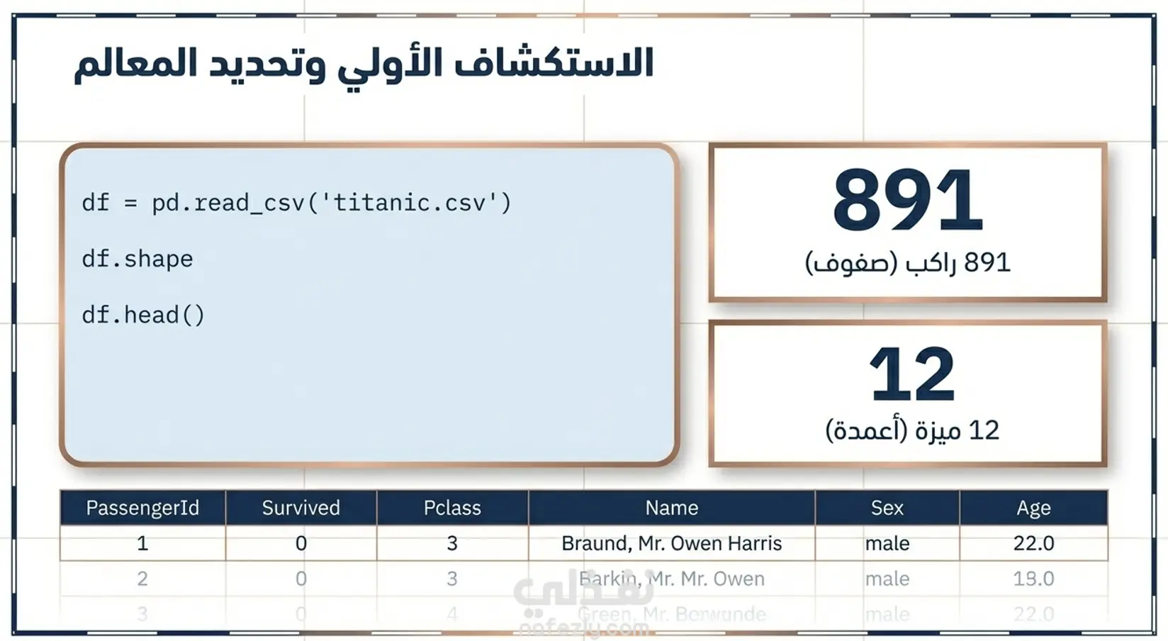 استكشاف وتنظيف وتصفية بيانات 'titanic dataset' سفينة تيتانيك
