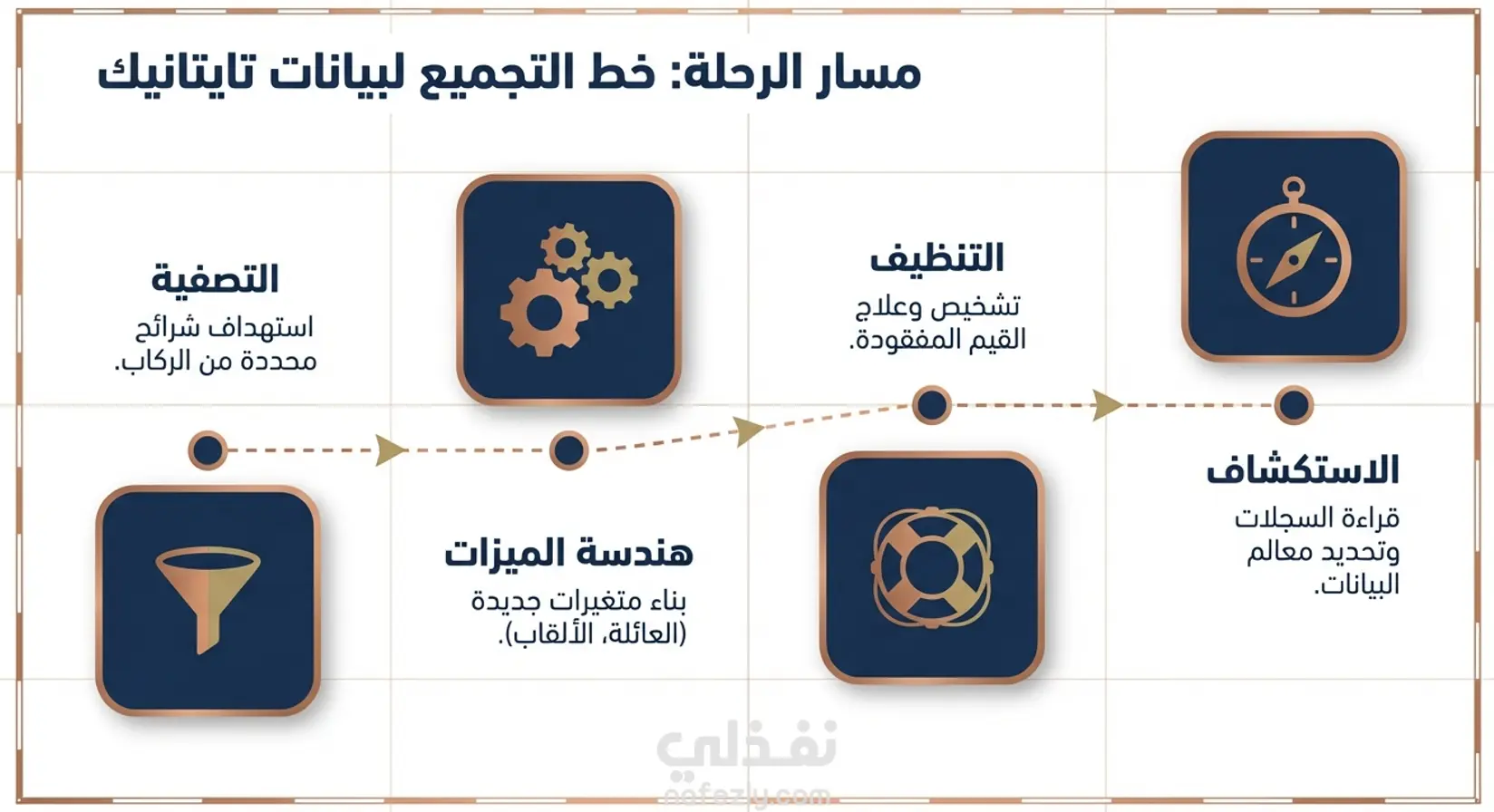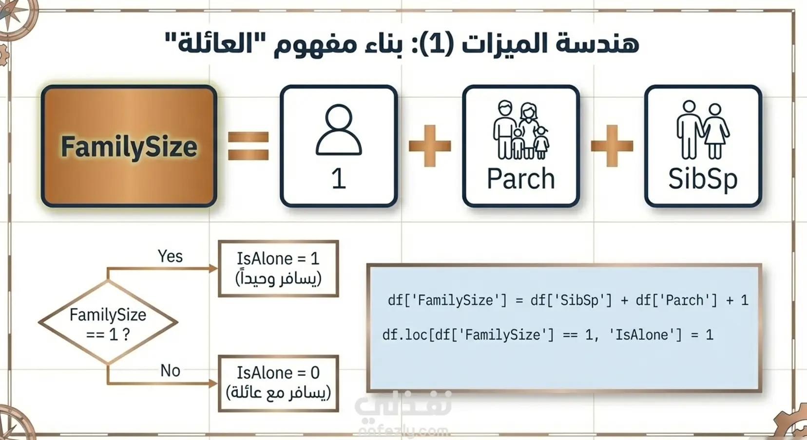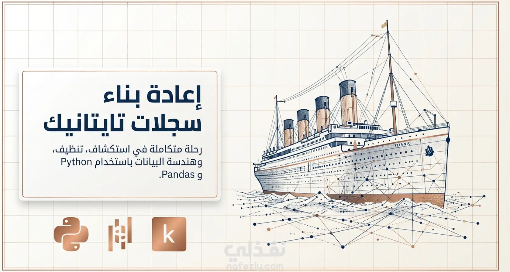 يتضمن المشروع استكشاف البيانات (891 صف و12 عمود) وتحليل القيم المفقودة، حيث تم التعامل مع البيانات الناقصة في الأعمدة المختلفة باستخدام Median و Mode، مع حذف الأعمدة غير المفيدة مثل Cabin. خطوات العمل 1- استيراد واستكشاف البيانات 2- تنظيف البيانات ومعالجة القيم المفقودة 3- هندسة واستحداث الميزات (Feature Engineering) 4-تصفية البيانات (Data Filtering) تم تنفيذ خطوات Data Cleaning كاملة لضمان جودة البيانات، بالإضافة إلى Feature Engineering مثل إنشاء عمود لحجم العائلة (FamilySize) وتحديد ما إذا كان الراكب يسافر بمفرده (IsAlone)، واستخراج الألقاب (Title) من الأسماء ومعالجتها. كما يشمل المشروع عمليات تصفية البيانات (Filtering) لاستخراج معلومات محددة مثل ركاب الدرجة الأولى أو فئات عمرية معينة. المشروع يوضح مهارات قوية في: Data Cleaning – Data Preprocessing – Feature Engineering باستخدام Pandas و NumPy.
