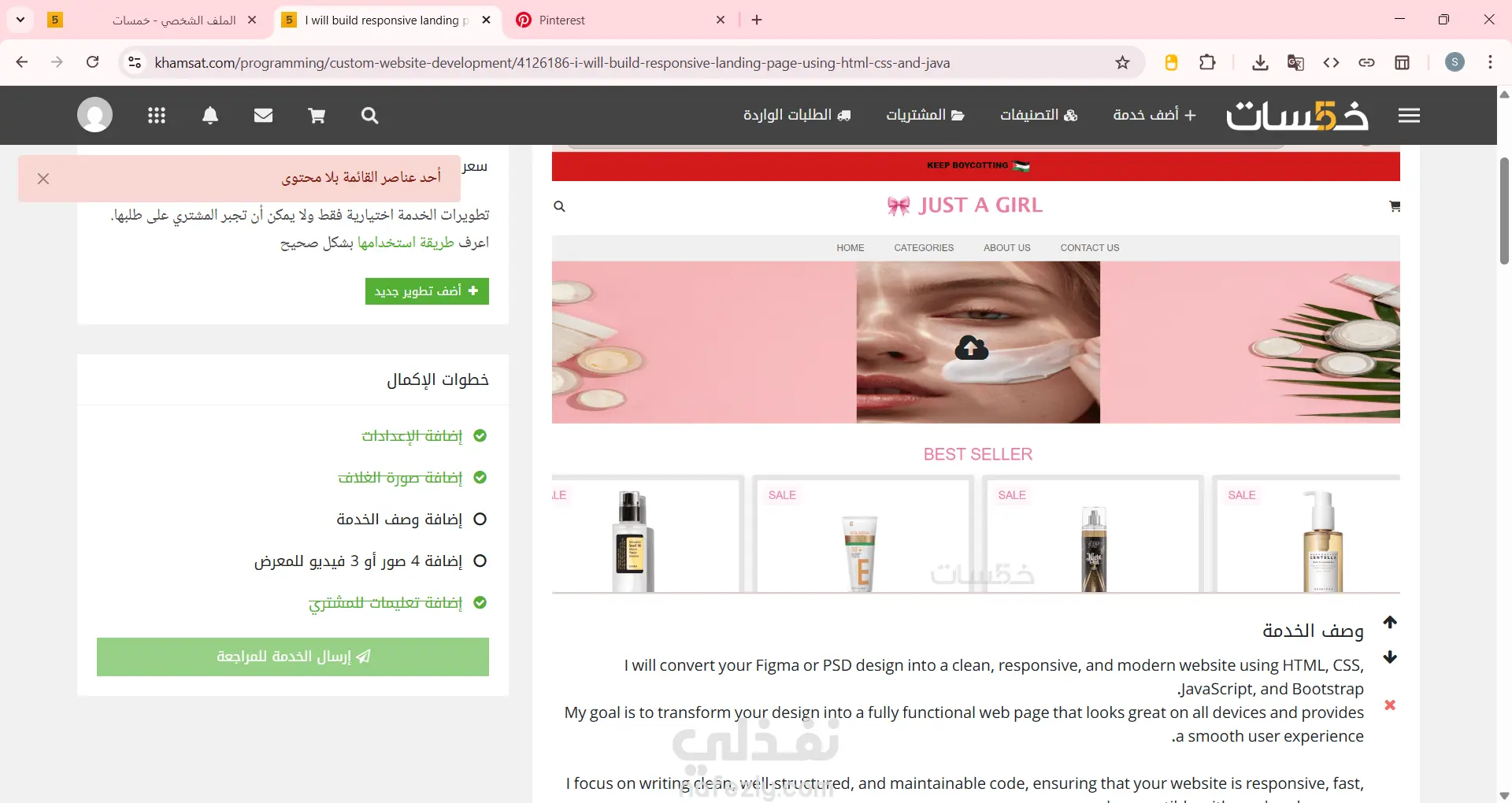 "Portfolio Website Design" "Landing Page باستخدام HTML & CSS" "To-Do App بـ JavaScript"