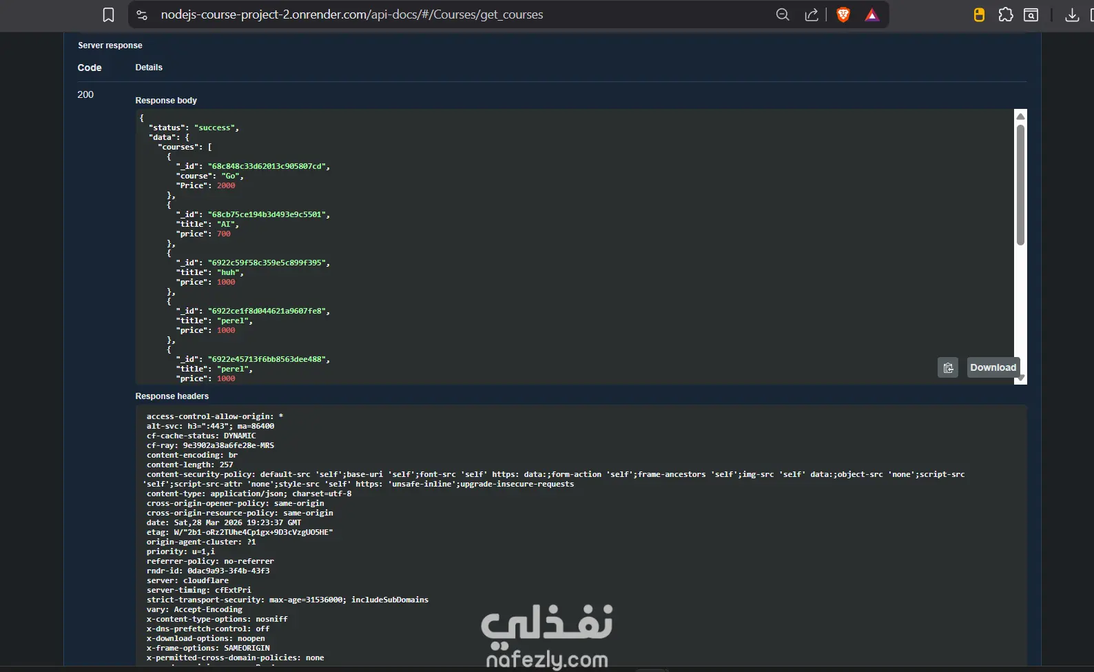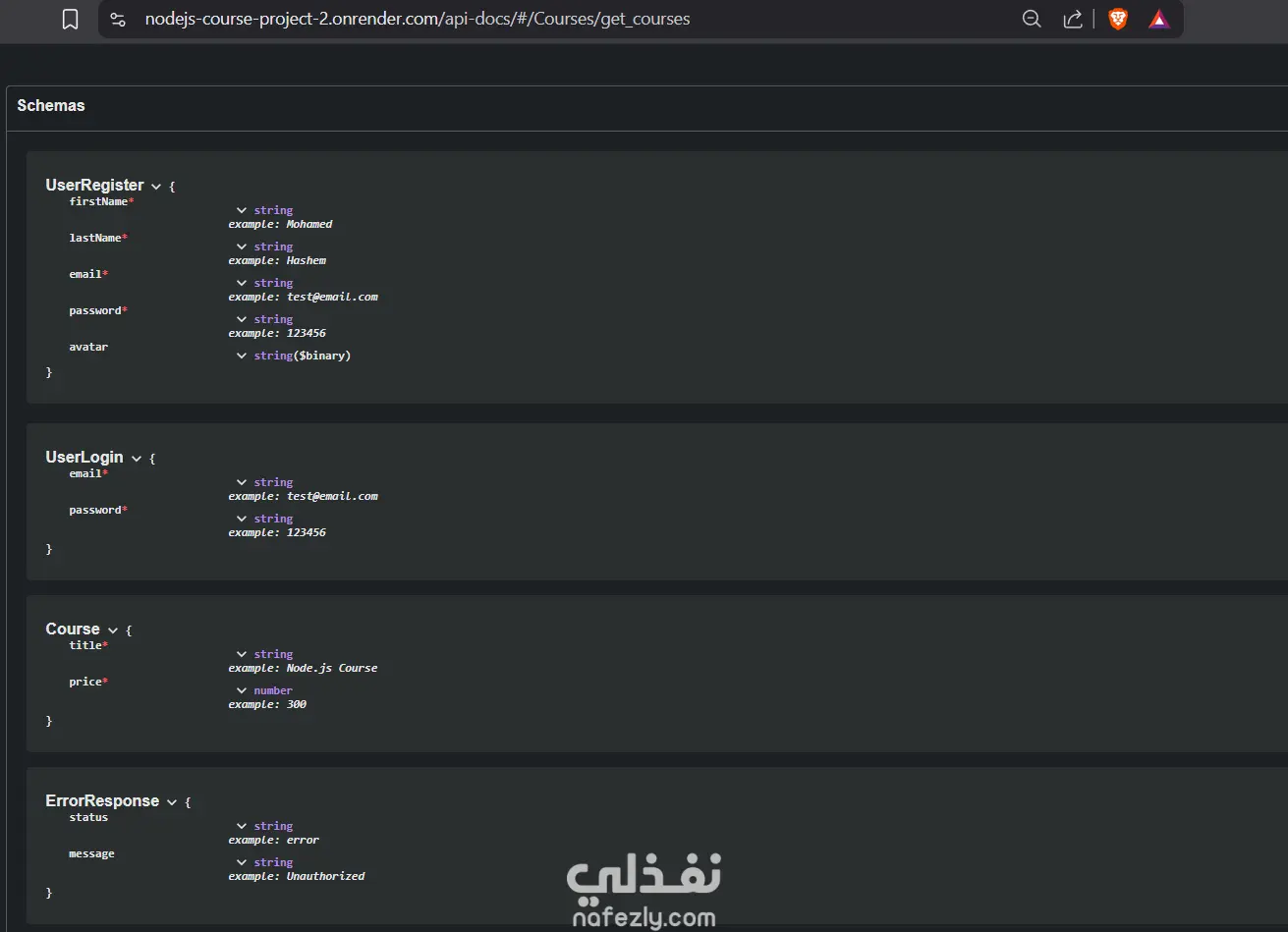 تطوير RESTful API متكاملة مع JWT وSwagger ورفع الملفات وBackend باستخدام Node.js وMySQL & MongoBD