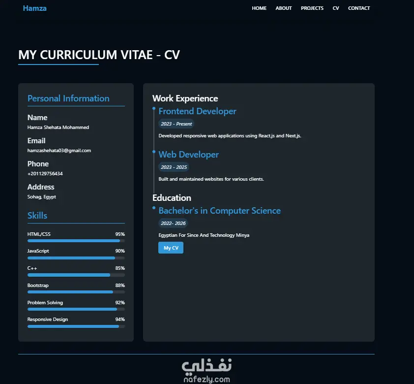أنا هصمملك بورتفوليو شخصي مميز يساعدك تعرض شغلك وخبراتك بطريقة منظمة وجذابة تناسب سوق العمل.