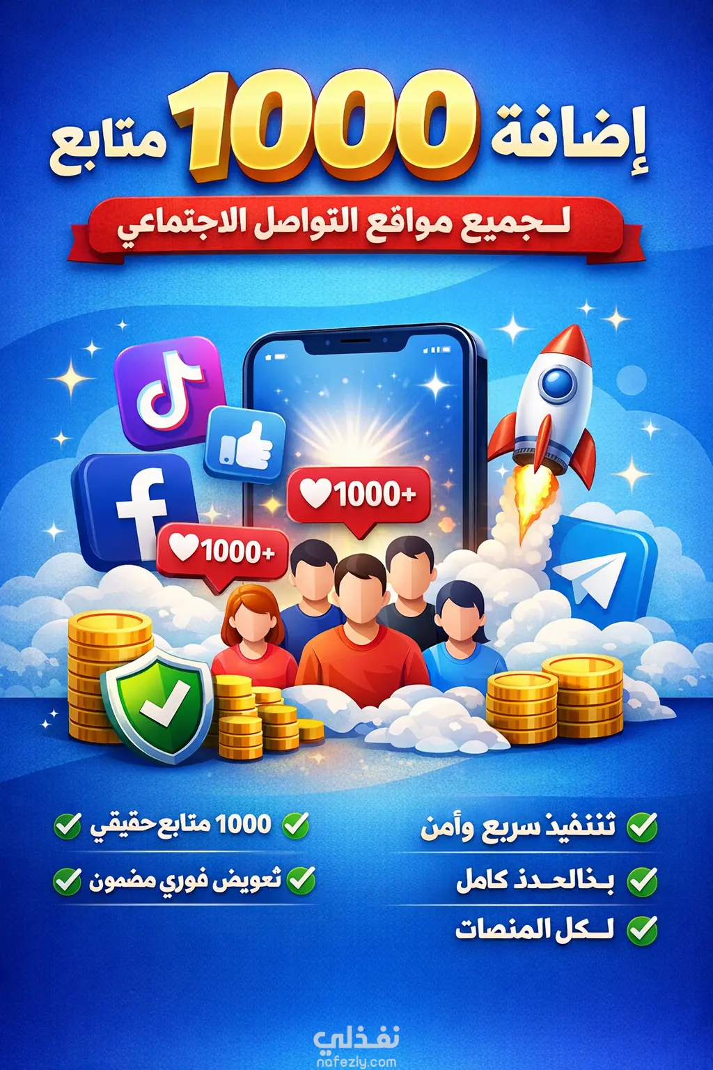 سوف أقوم بإضافة 1000 متابع لحسابك على مواقع التواصل الاجتماعي عبر سيرفرات آمنة وسريعة 🚀 المنصات المتاحة: انستقرام تيك توك تويتر (X) فيسبوك يوتيوب تيليجرام ✔ 1000 متابع حقيقي ✔ تنفيذ سريع وآمن ✔ بدون كلمة مرور ✔ ضمان التعويض في حالة النقص ✔ مناسب لجميع الحسابات ما الذي ستحصل عليه 1000 متابع للحساب المطلوب بدء التنفيذ خلال وقت قصير تسليم العدد كامل تعويض فوري في حالة النقص ملاحظات هامة ⚠️ • تغيير يوزر الحساب أثناء تنفيذ الخدمة دون الرجوع للبائع ينهي الخدمة نهائيًا • يجب أن يكون الحساب عام أثناء تنفيذ الخدمة وليس خاص • المتابعين من مختلف الدول العربية والأجنبية ولا يمكن استهدافهم • لا نضمن أي تفاعل (لايكات أو تعليقات) الخدمة للمتابعين فقط • ضمان التعويض في حالة حدوث أي نقص • لا يسمح بشراء خدمة متابعين أخرى أثناء تنفيذ الخدمة كي لا يختلط الأمر • لا يمكن إلغاء الطلب بعد بدء التنفيذ