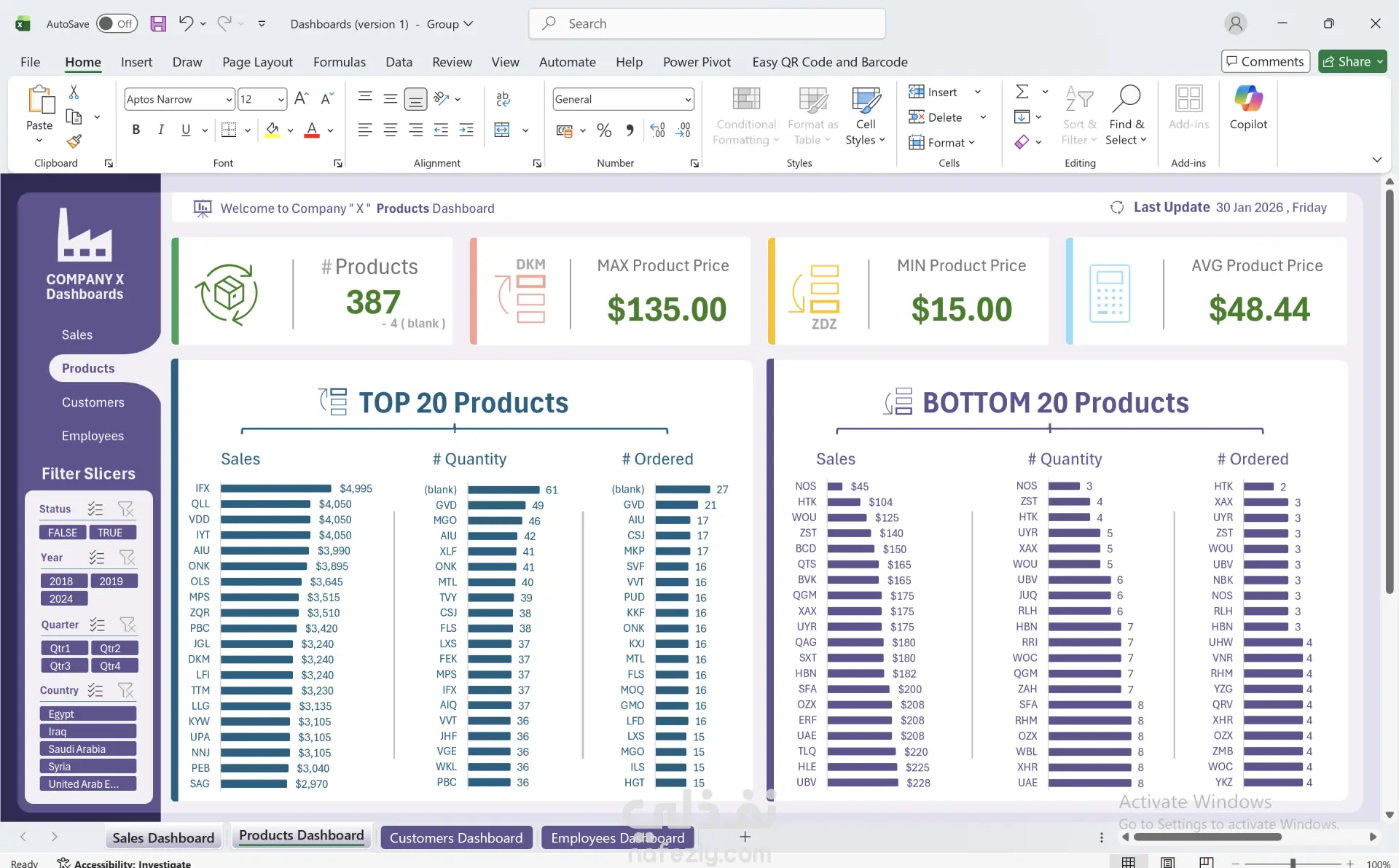 تحليل البيانات وإنشاء Dashboards احترافية باستخدام Excel