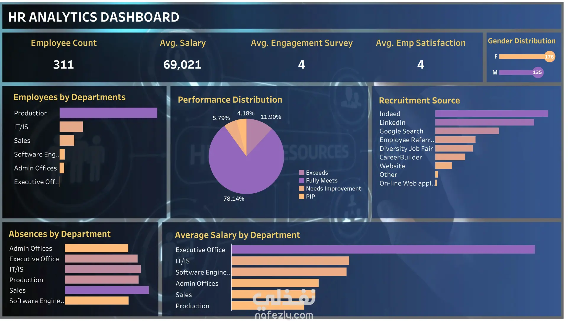 قمت بتصميم Dashboard تفاعلي باستخدام Tableau يساعد إدارات الموارد البشرية على تحليل البيانات واستخراج رؤى واضحة تدعم اتخاذ القرار. ? ما الذي يقدمه هذا المشروع؟ * عرض شامل لعدد الموظفين ومتوسط الرواتب ومستوى الرضا * تحليل توزيع الموظفين حسب الأقسام * تقييم الأداء الوظيفي بشكل بصري واضح * تحليل مصادر التوظيف الأكثر فعالية * دراسة الغياب وتأثيره على الأقسام * مقارنة الرواتب بين الإدارات المختلفة ?️ ما تم تنفيذه: تنظيف البيانات وتجهيزها للتحليل بناء KPIs لقياس الأداء تصميم Dashboard تفاعلي باستخدام Tableau استخدام Visualization متنوعة (Bar Charts, Pie Charts) ? ماذا ستستفيد؟ * معرفة أسباب ارتفاع معدل الغياب أو الاستقالة * تحسين استراتيجيات التوظيف * اتخاذ قرارات مبنية على بيانات حقيقية * فهم أداء الموظفين بشكل أعمق ?️ الأدوات المستخدمة: Tableau – Excel - SQL ? يمكنني تصميم Dashboard مخصص لبيانات شركتك لمساعدتك على تحقيق أفضل النتائج.