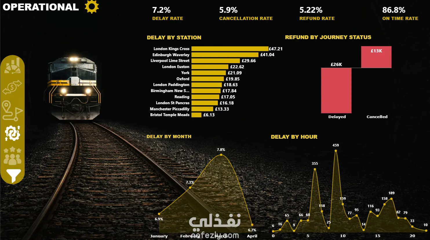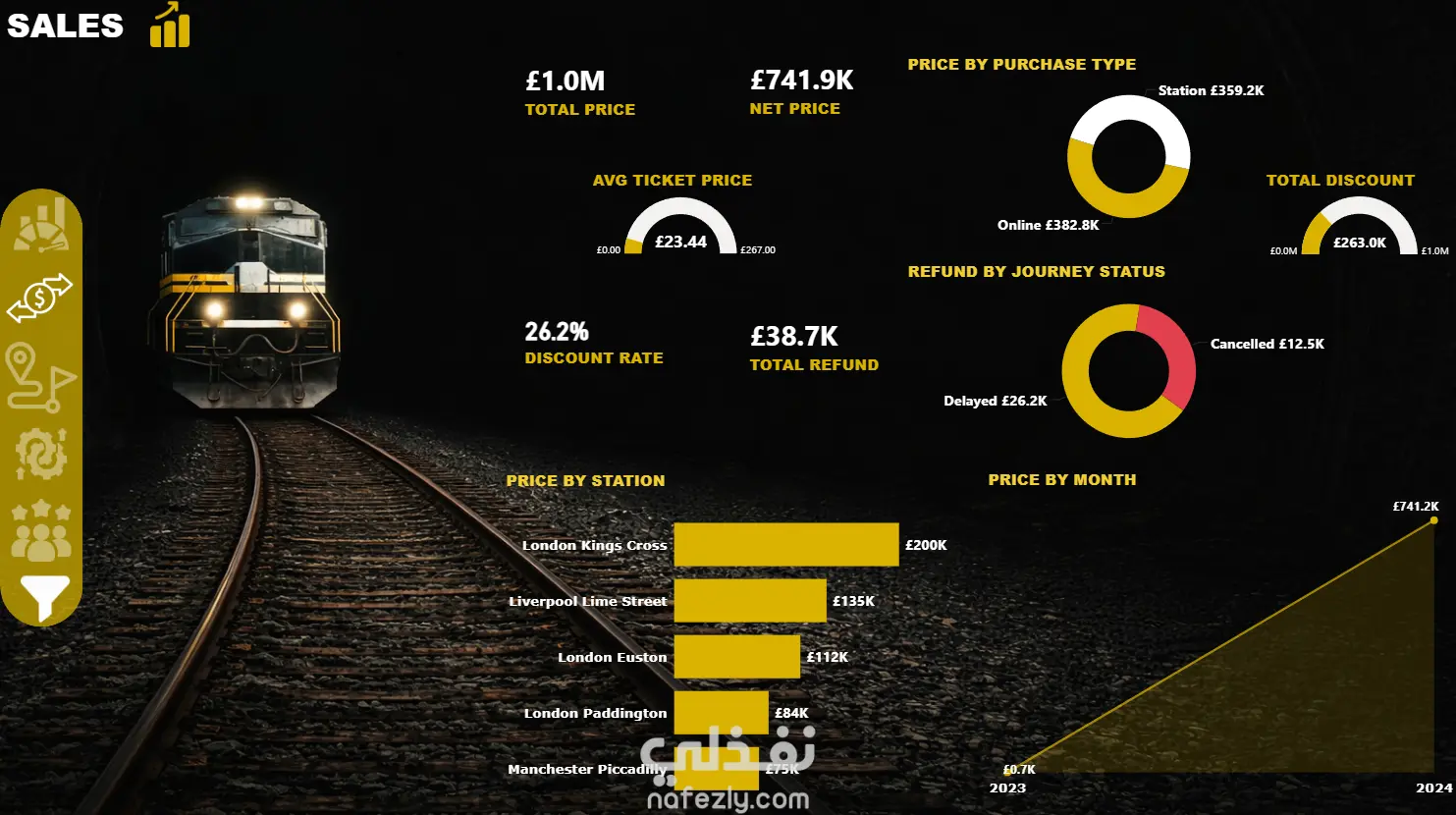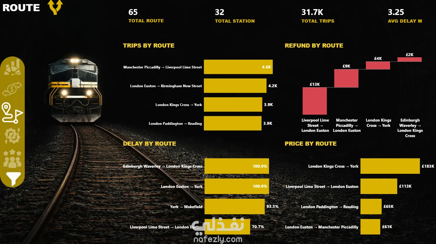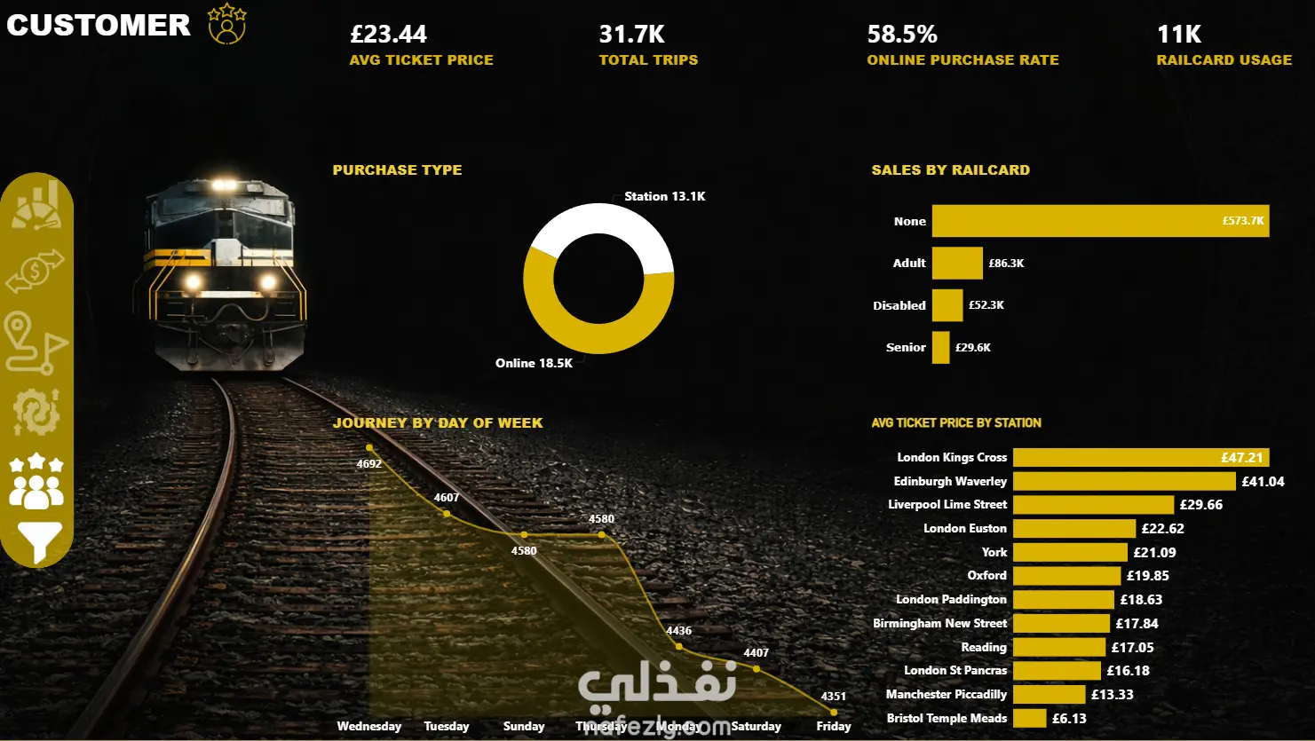 هذا المشروع عبارة عن تحليل بيانات متكامل (End-to-End Data Analysis Project) لبيانات رحلات القطارات في المملكة المتحدة، بدءًا من تصميم قاعدة البيانات وحتى إنشاء داشبورد تفاعلي باستخدام Power BI.
