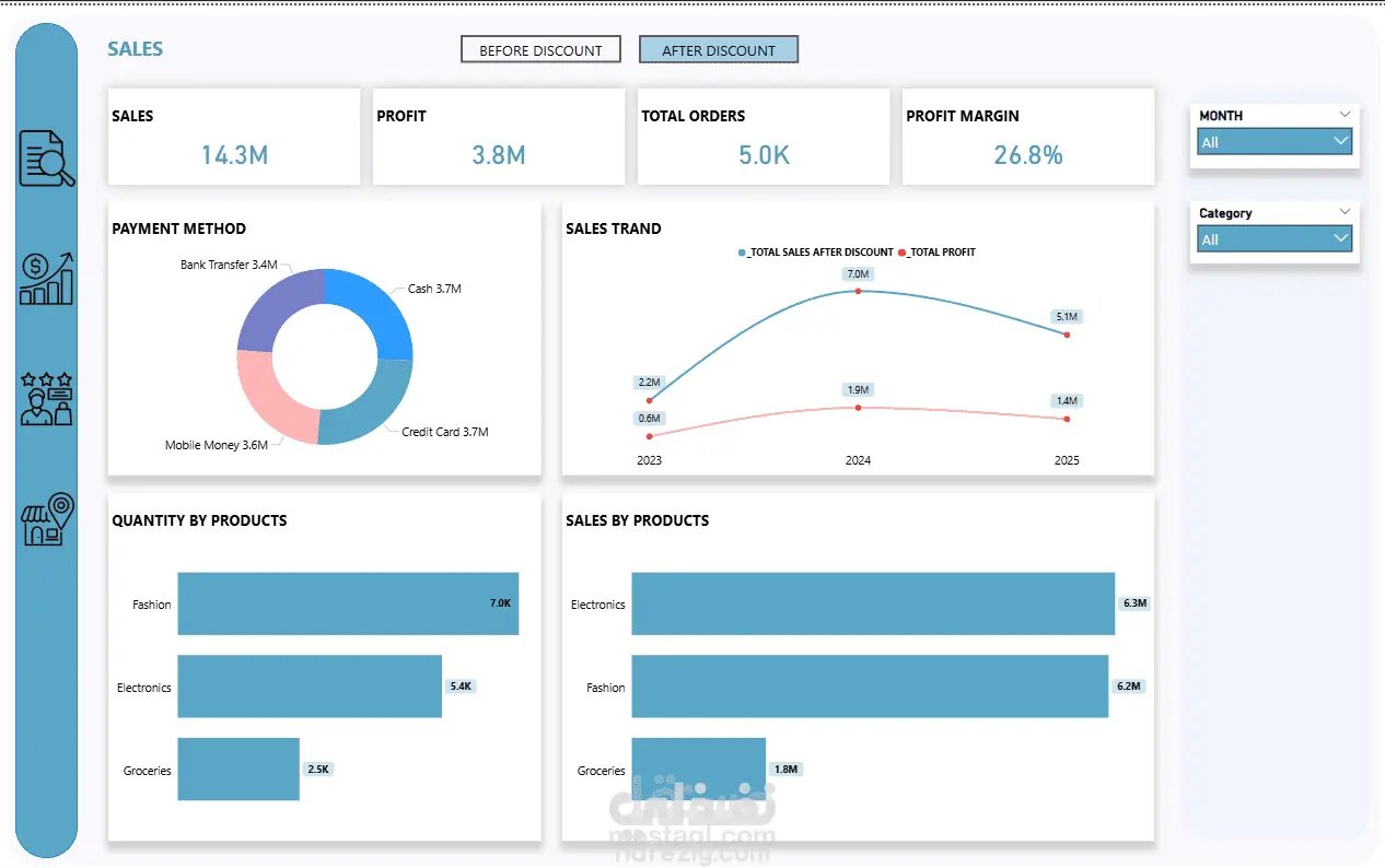 مقارنة المبيعات قبل وبعد الخصم