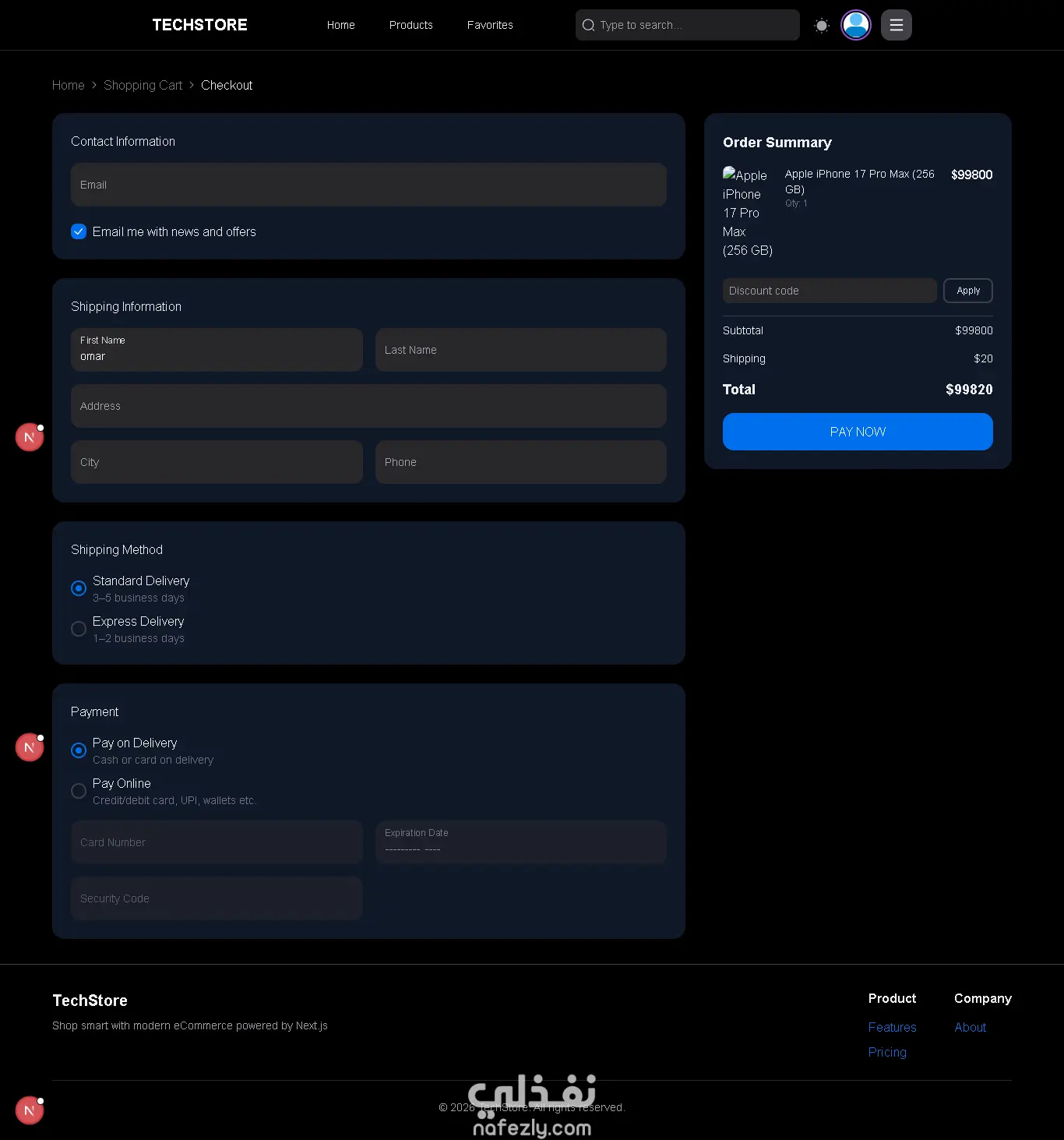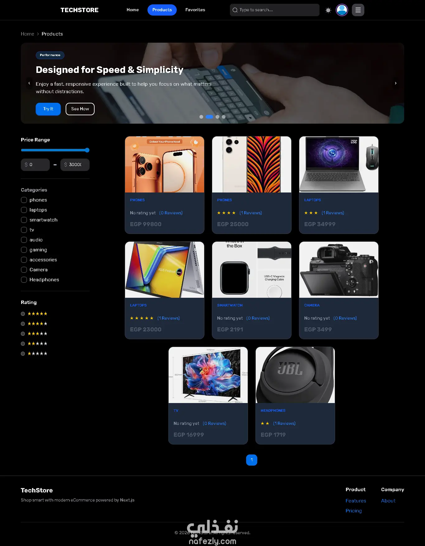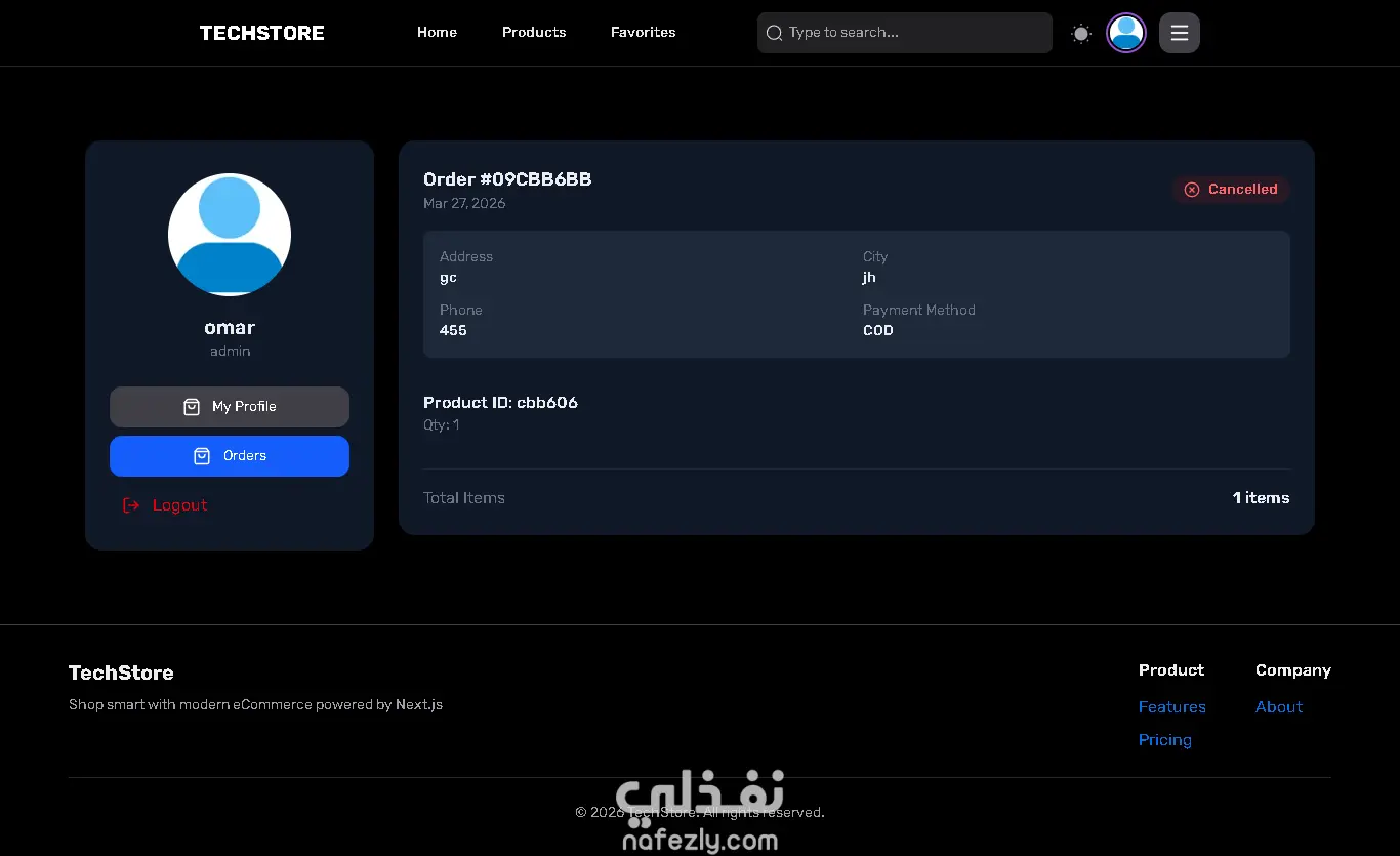 متجر تقني حديث – منصة تجارة إلكترونية متكاملة (Full Stack E-commerce)