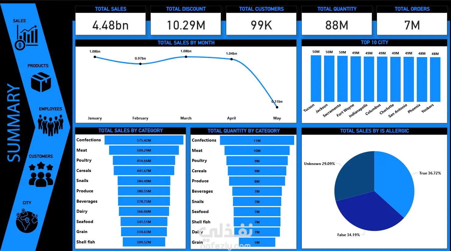 تم تنفيذ مشروع تحليل بيانات متكامل باستخدام SQL وExcel وPower BI لتحليل بيانات المبيعات والمنتجات والعملاء والموظفين، بهدف تحويل البيانات الضخمة إلى رؤى استراتيجية تساعد في تحسين الأداء واتخاذ قرارات دقيقة.