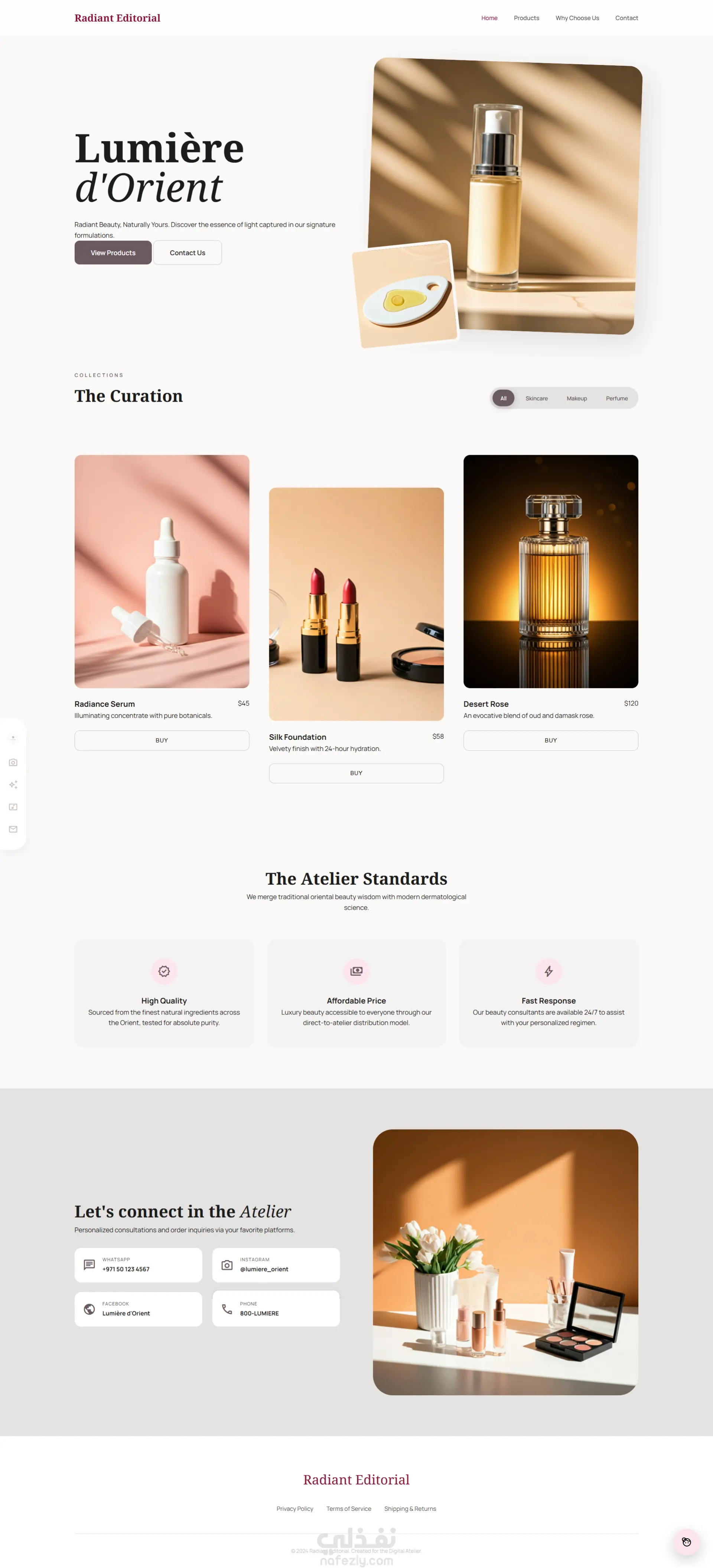 نموذج لصفحة هبوط (Landing Page) عصرية لعلامة تجارية في مجال التجميل، تدمج بين التصميم الطباعي الفاخر (Editorial Design) وأحدث تقنيات الويب لتقديم تجربة مستخدم سلسة واحترافية. --- أبرز المميزات: - تجربة مستخدم تفاعلية: برمجة نظام فلترة ذكي للمنتجات (Skincare, Makeup, Perfume) باستخدام Vanilla JS لضمان السرعة دون مكتبات ثقيلة. - تجاوب كامل (Responsive): تصميم متوافق تماماً مع جميع الشاشات، مع قائمة "Mobile Menu" منزلقة مخصصة للهواتف. - حركات انسيابية: إضافة تأثيرات ظهور العناصر عند التمرير (Scroll Reveal) لتعزيز الجاذبية البصرية. - لمسات عصرية: استخدام تقنيات Glassmorphism (الزجاج المضبب) وشبكات CSS Grid لتنظيم المحتوى بشكل هندسي مريح للعين. --- التقنيات المستخدمة: - HTML5 / CSS3: بناء هيكل نظيف باستخدام (Custom Properties & Flexbox). - JavaScript: للتحكم في المنطق البرمجي والتفاعلات الحية. - Google Fonts & Material Symbols: لضمان هوية بصرية فخمة ومتناسقة. --- الهدف من المشروع: تقديم واجهة رقمية تعكس "الفخامة" وترفع من قيمة العلامة التجارية، مع التركيز على نظافة الكود (Clean Code) وسرعة الأداء.