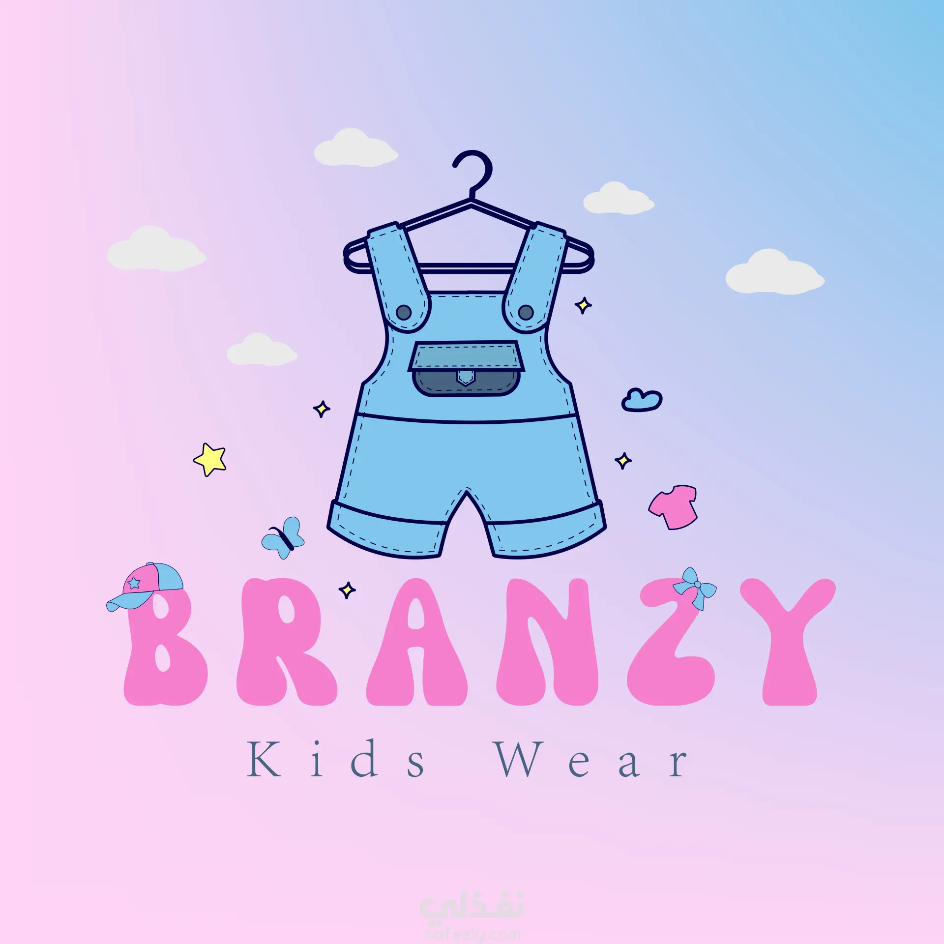 تم بناؤه باستخدام أسلوب Illustrative Logo ليكون جذاباً بصرياً وسهل التذكر للفئة المستهدفة من الأمهات والآباء. العناصر الفنية في التصميم: الأيقونة المركزية: استخدام رسم توضيحي لقطعة ملابس (Salopette) معلقة بشكل انسيابي، مما يحدد هوية النشاط التجاري بوضوح من النظرة الأولى. لوحة الألوان: تم اختيار تدرج لوني (Gradient) بين الوردي واللبناني لإعطاء طابع حيوي وشامل (للأولاد والبنات)، مع استخدام ألوان الباستيل المريحة للعين. التايبوجرافي (Typography): استخدام خط "Bubble" عريض ومنحني لكلمة BRANZY لتعزيز الشعور بالنعومة والمرح، مع خط كلاسيكي بسيط لكلمة Kids Wear لضمان التوازن والوضوح. العناصر المكملة: إضافة رسومات صغيرة (نجوم، سحب، فراشات) لتكوين بيئة بصرية متكاملة توحي بالخيال والبهجة المرتبطة بعالم الأطفال. القيمة المضافة للمشروع: تصميم مرن يصلح للاستخدام على تطبيقات مختلفة (أكياس التسوق، ملصقات الملابس، واجهات السوشيال ميديا). بناء هوية بصرية قوية تساعد العلامة التجارية على التميز في سوق ملابس الأطفال المنافس.
