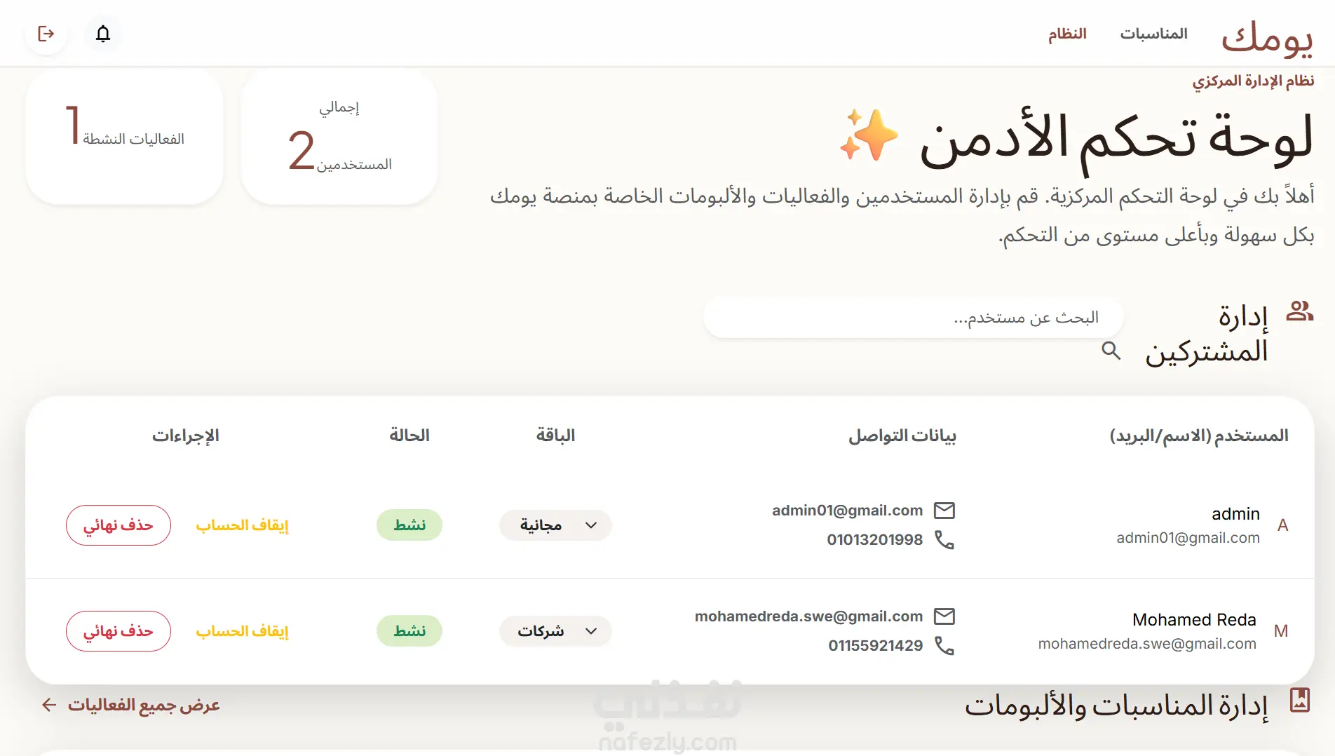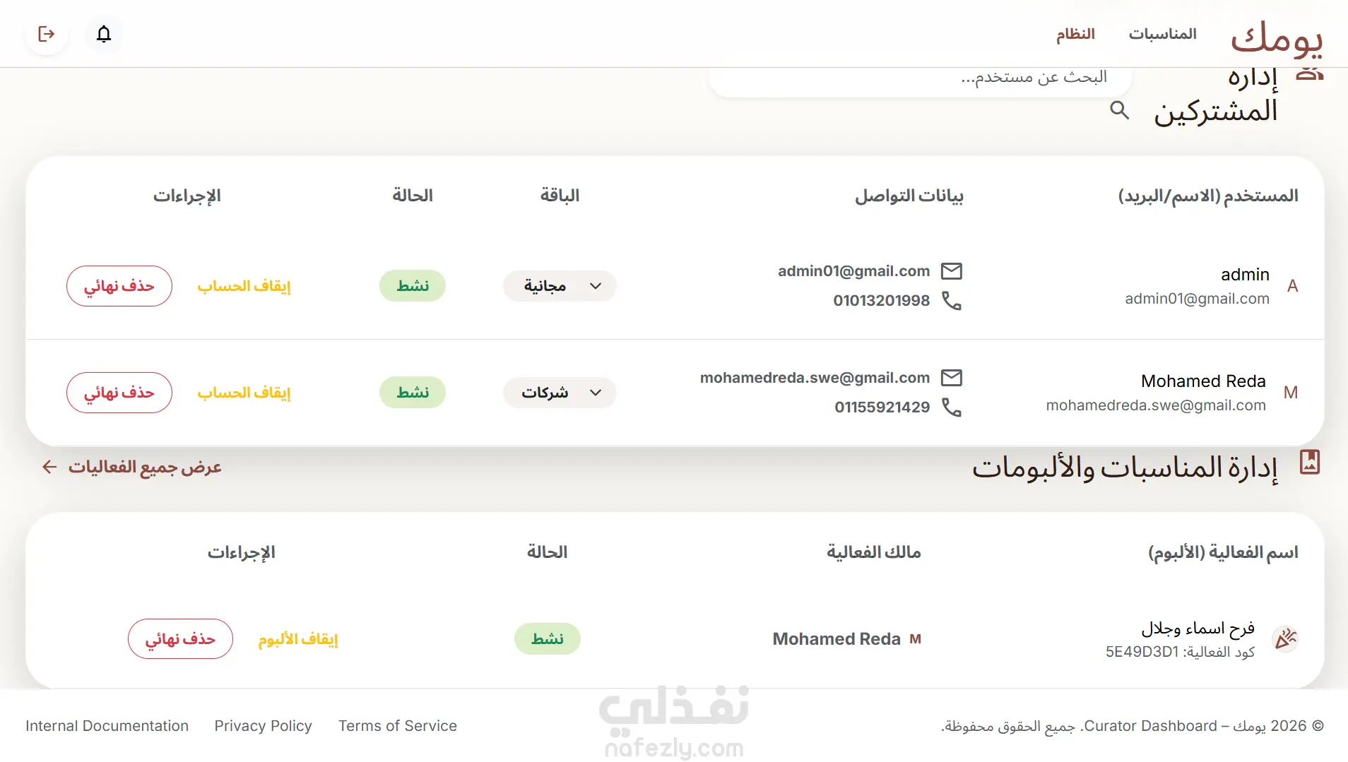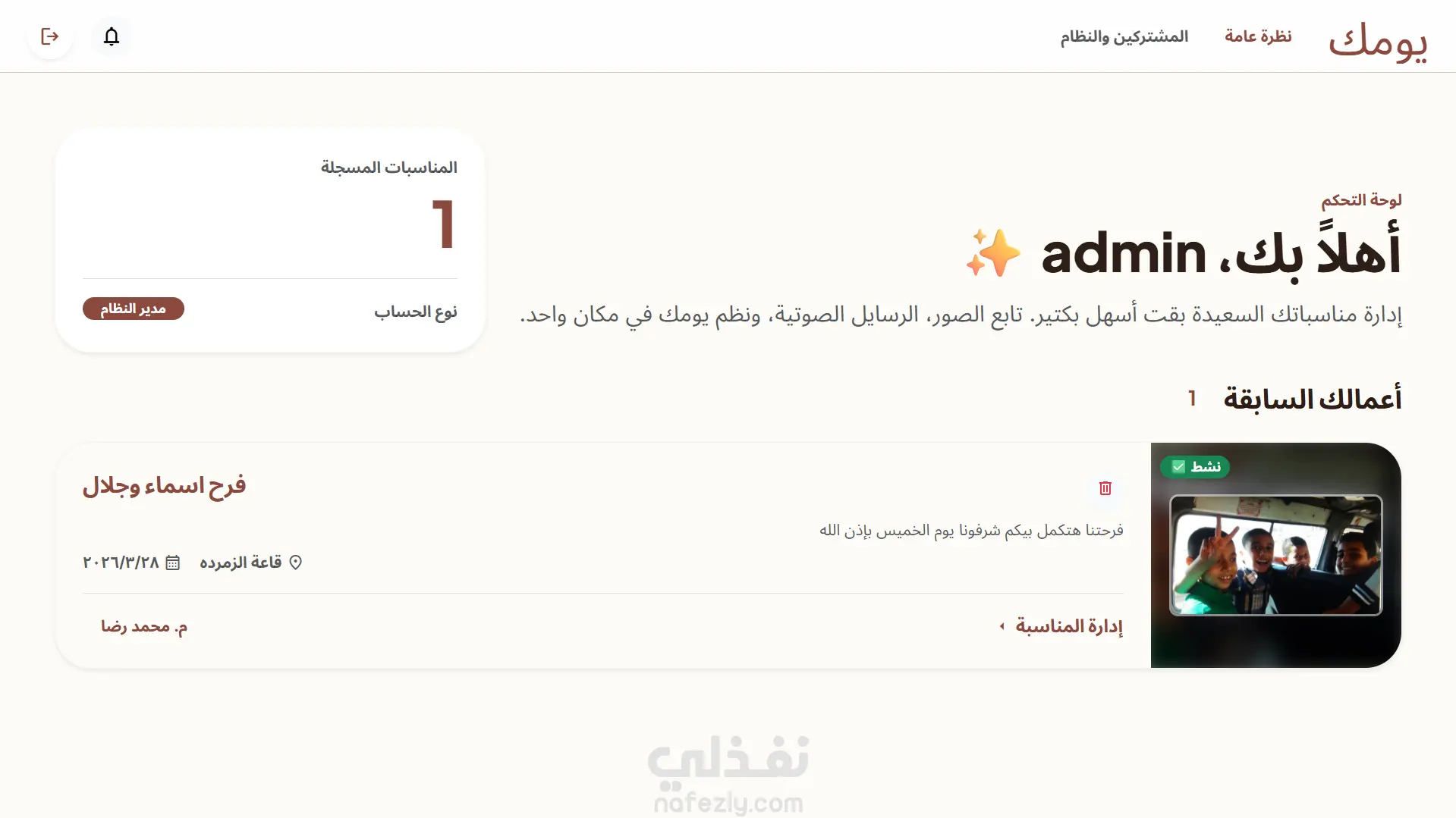 قمت بتطوير منصة YouMak، وهي منصة تتيح للمستخدمين رفع ومشاركة الصور والفيديوهات في الأحداث (مثل الأفراح والتخرج) بشكل لحظي بدون الحاجة لتحميل تطبيق. 📸 الفكرة الأساسية: أي شخص في الحدث يمكنه الدخول عبر QR Code ورفع الصور مباشرة لتظهر في معرض حي (Live Gallery). 🔧 أهم المميزات: رفع الصور والفيديوهات من أكثر من 100 مستخدم في نفس الوقت نظام عرض مباشر (Live Slideshow) لوحة تحكم للإدارة (قبول / رفض الصور) تحسين الصور باستخدام Cloudinary تجربة استخدام سريعة بدون تسجيل 🎯 التحديات والحلول: التعامل مع عدد كبير من المستخدمين في نفس الوقت تحسين سرعة رفع وعرض الصور بناء نظام مستقر للـ real-time updates
