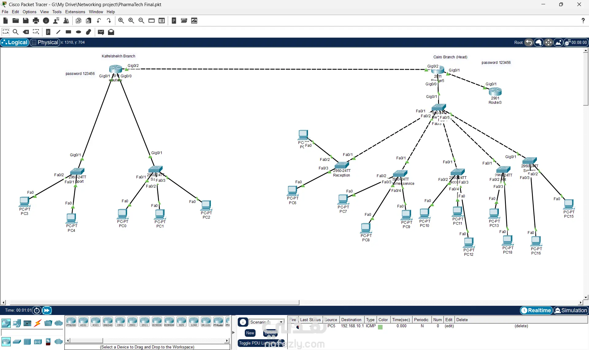 تصميم ومحاكاة شبكات الكمبيوتر (Topology) احترافية باستخدام Cisco Packet Tracer.