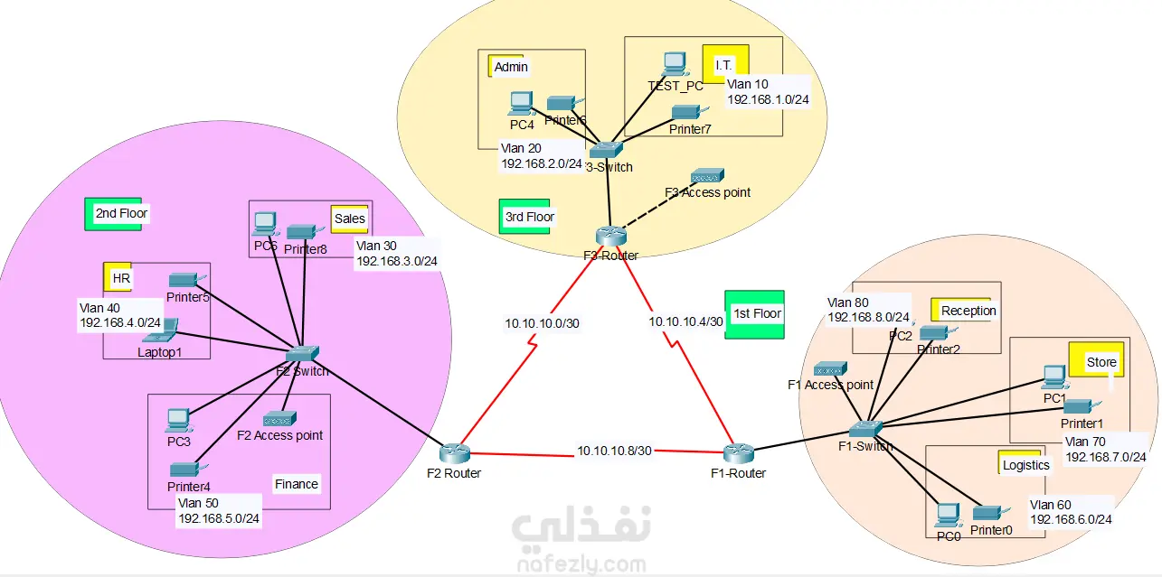 لو محتاج تصميم شبكة احترافي، دقيق، وشغال بنسبة 100% لمحاكاتها قبل التنفيذ الفعلي، أنا هنا عشان أساعدك. هصمم لك التوبولوجي (Topology) اللي محتاجها مع عمل كل الإعدادات (Configurations) اللازمة لضمان تواصل الأجهزة ببعضها بكفاءة.