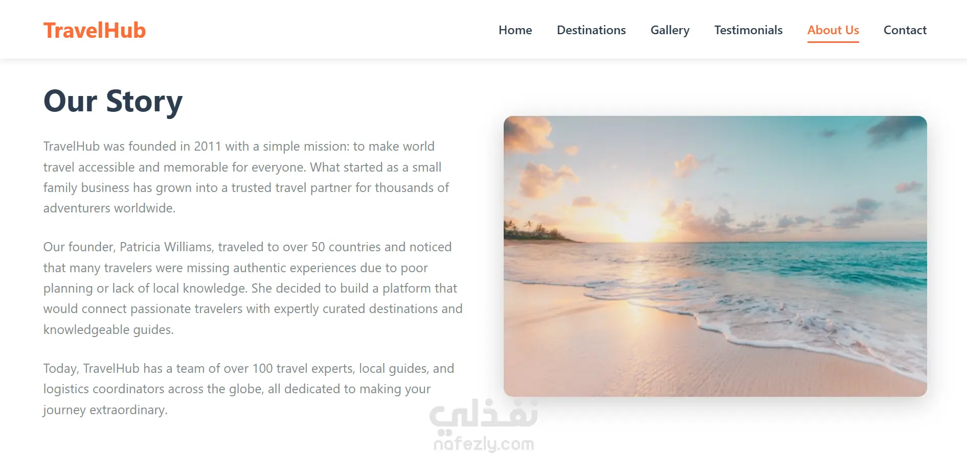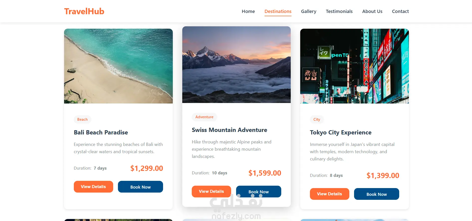 موقع إلكتروني احترافي لشركة سياحة تم تصميمه وتطويره بالكامل باستخدام HTML و CSS و JavaScript بدون استخدام أي مكتبات خارجية. الموقع عبارة عن منصة متكاملة تشمل عدة صفحات مثل: الصفحة الرئيسية (Home) لعرض الخدمات والعروض صفحة الوجهات السياحية مع إمكانية الفلترة صفحة تفاصيل الرحلات صفحة الحجز مع نموذج تفاعلي صفحة معرض الصور صفحة آراء العملاء صفحة من نحن صفحة تواصل معنا مميزات المشروع: تصميم عصري وجذاب ومتجاوب مع جميع الأجهزة (موبايل – تابلت – ديسكتوب) نظام حجز كامل مع تحقق من البيانات (Validation) تخزين بيانات الحجز باستخدام LocalStorage فلاتر ديناميكية للوجهات السياحية تأثيرات Animations احترافية تجربة مستخدم سهلة وسريعة هذا المشروع يعكس قدرتي على بناء مواقع متكاملة من الصفر مع التركيز على تجربة المستخدم والأداء.