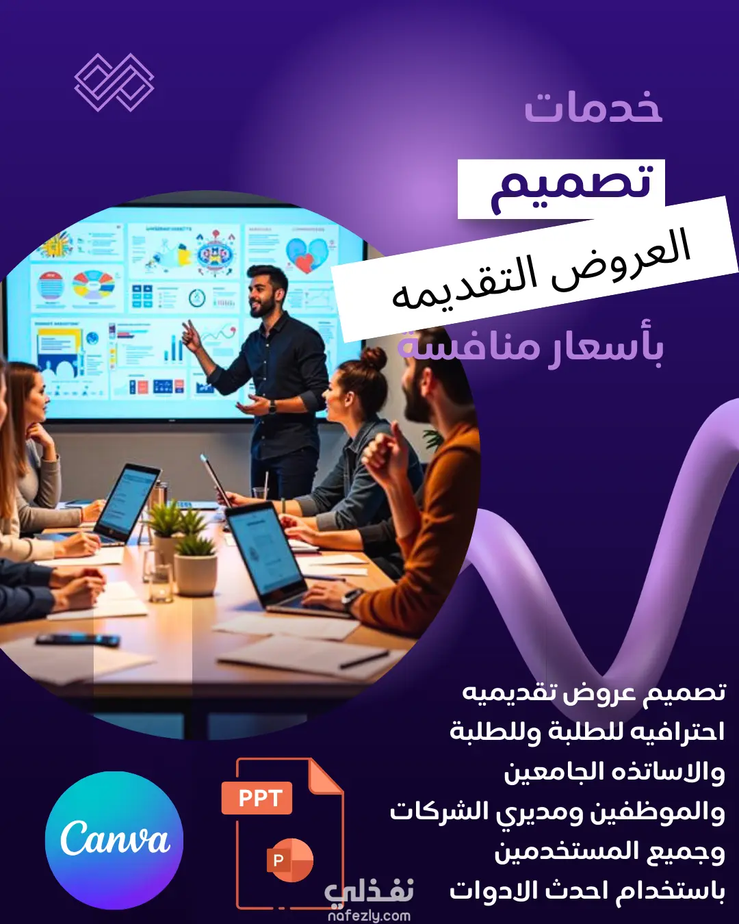 أنا هنا لأقدم لك تصميم عروض تقديمية مميزة باستخدام PowerPoint وCanva مدعومة بتقنيات الذكاء الاصطناعي لتوليد محتوى مناسب ومخصص، مع التركيز على التصميم البصري والرسائل المؤثرة.