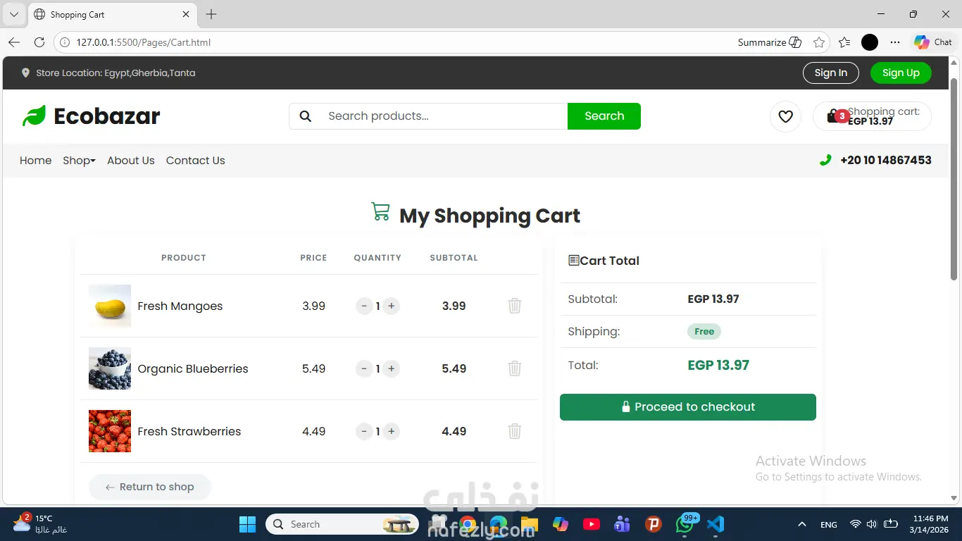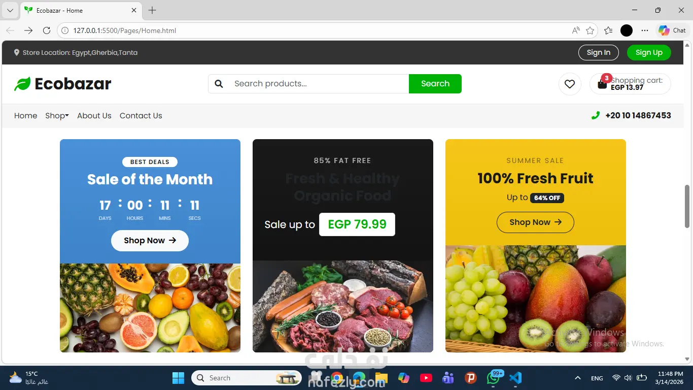 طبيق متجر إلكتروني (E-Commerce) يتيح للمستخدمين تصفح المنتجات، إضافة المنتجات إلى سلة المشتريات، وإتمام عملية الشراء.