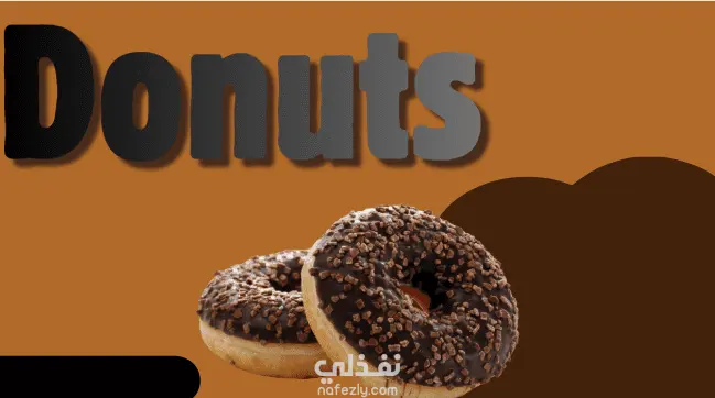 التصميم بشكل عام يبدو كملصق إعلاني أو واجهة دعائية بسيطة وجذابة لمنتجات الدونات