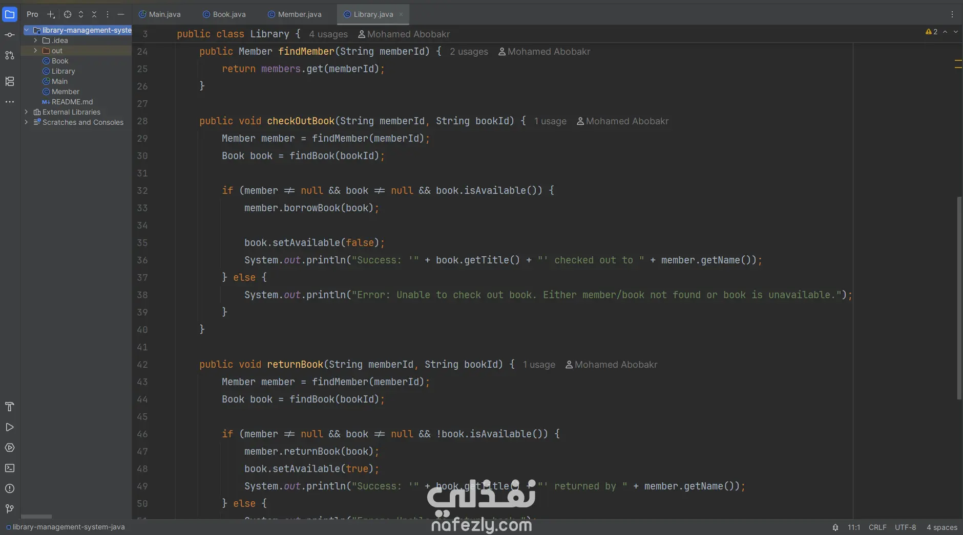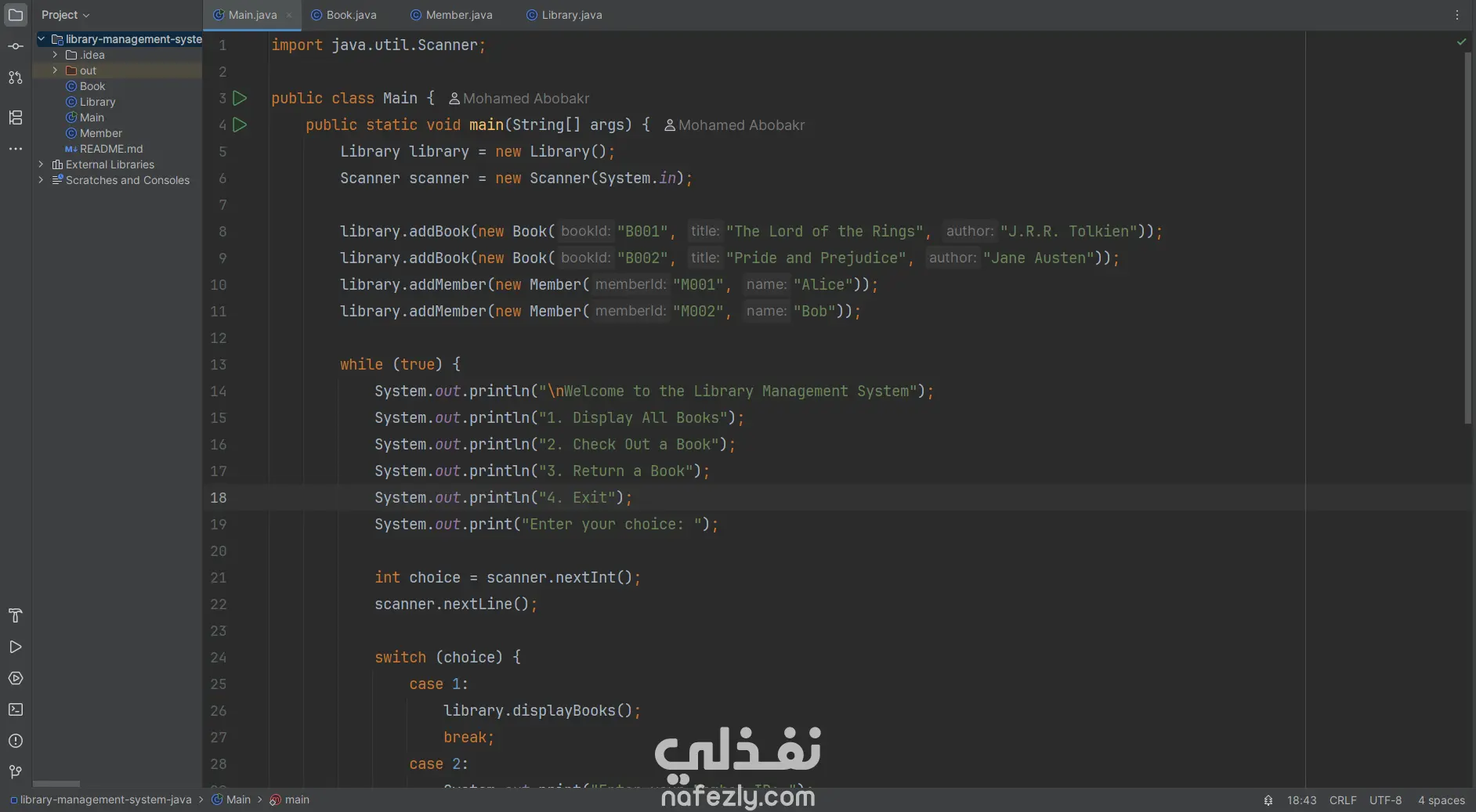 نظام إدارة مكتبة – Java