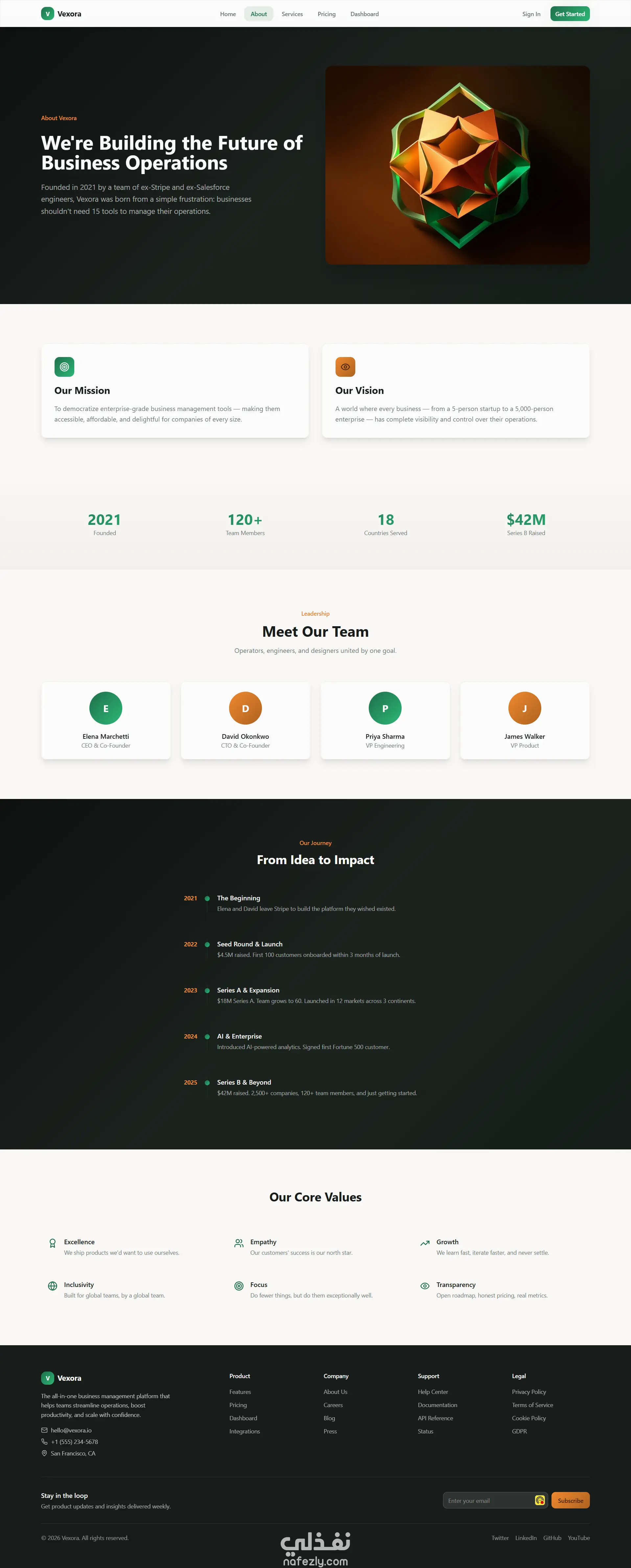 - صفحة من نحن (About) لعرض معلومات عن الشركة