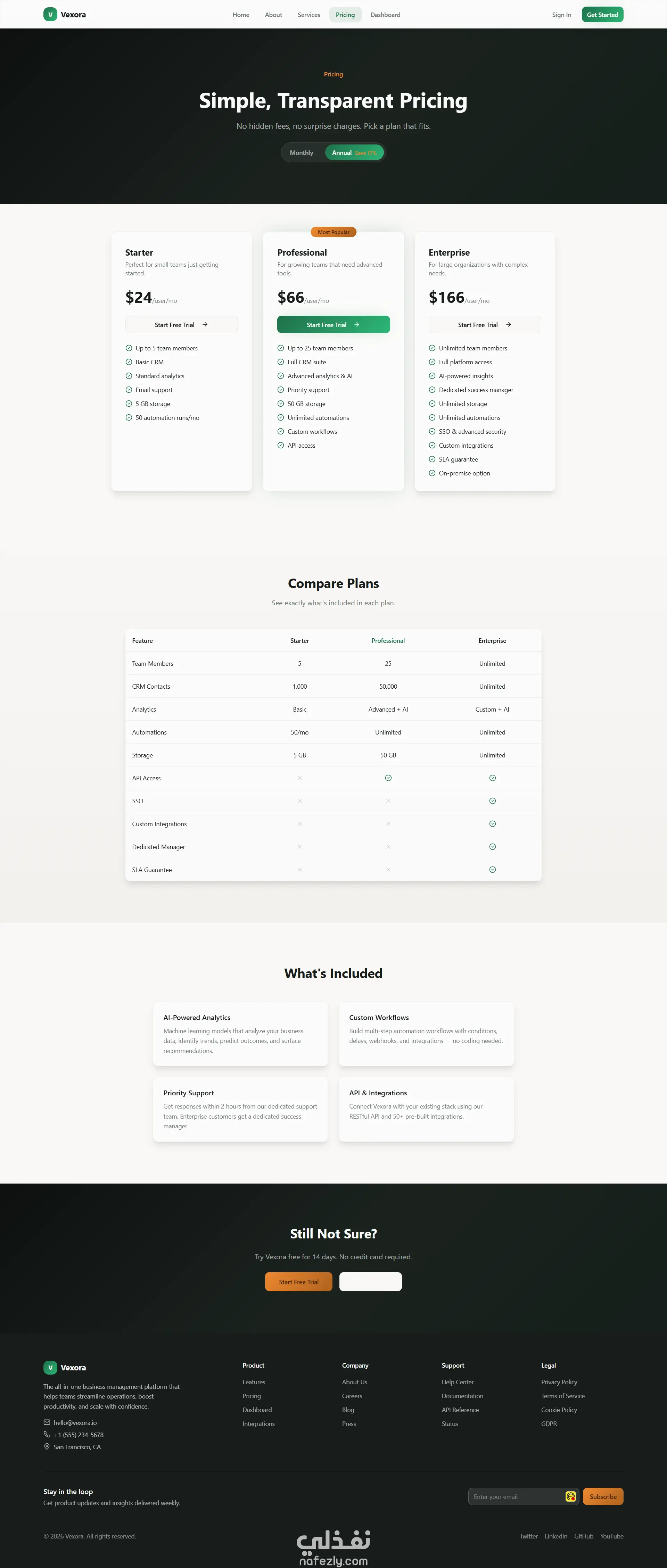 - صفحة المنتجات / الباقات (Pricing) بشكل احترافي
