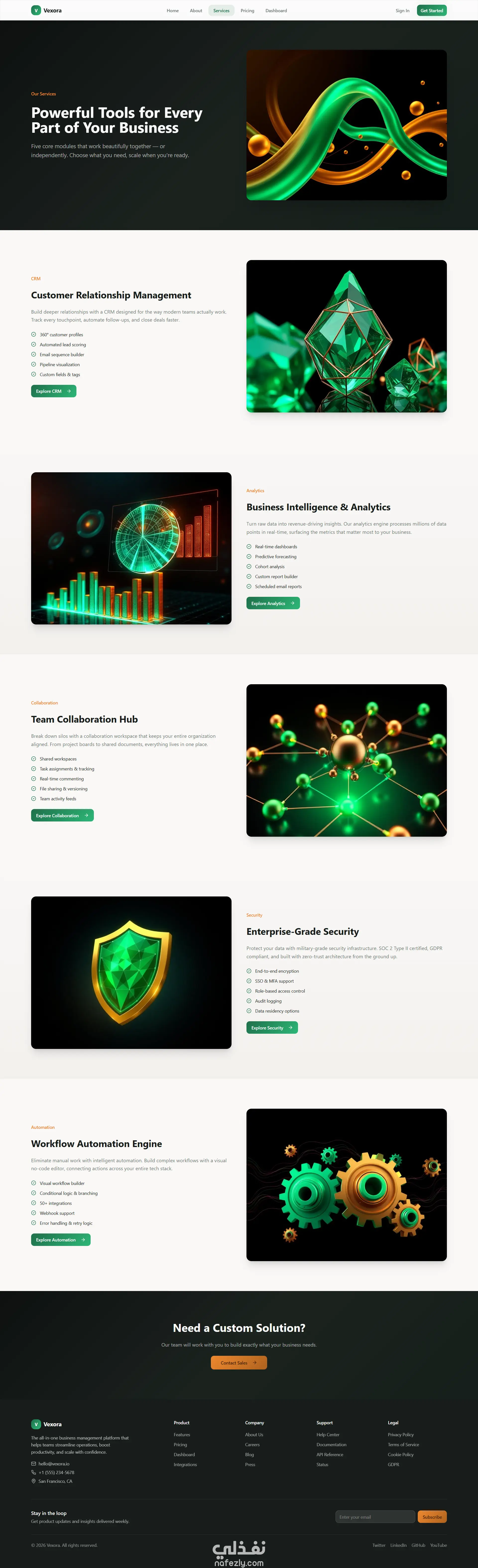 - صفحة الخدمات (Services) مع عرض تفصيلي لكل خدمة