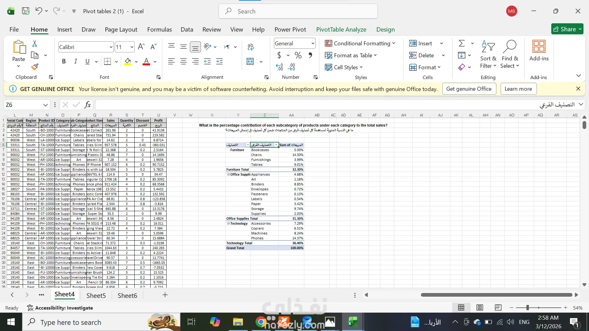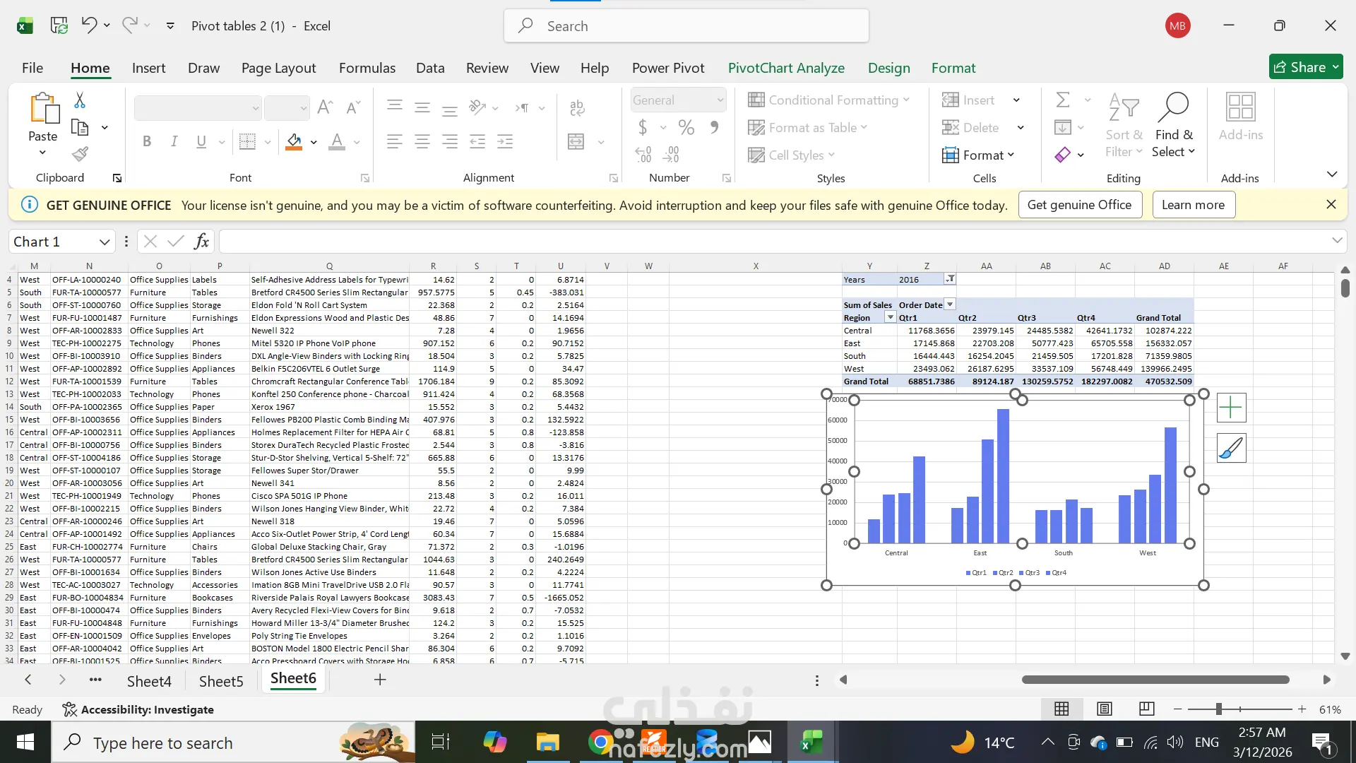لقد قمت بعمل pivot tables و pivot charts باستخدام excel