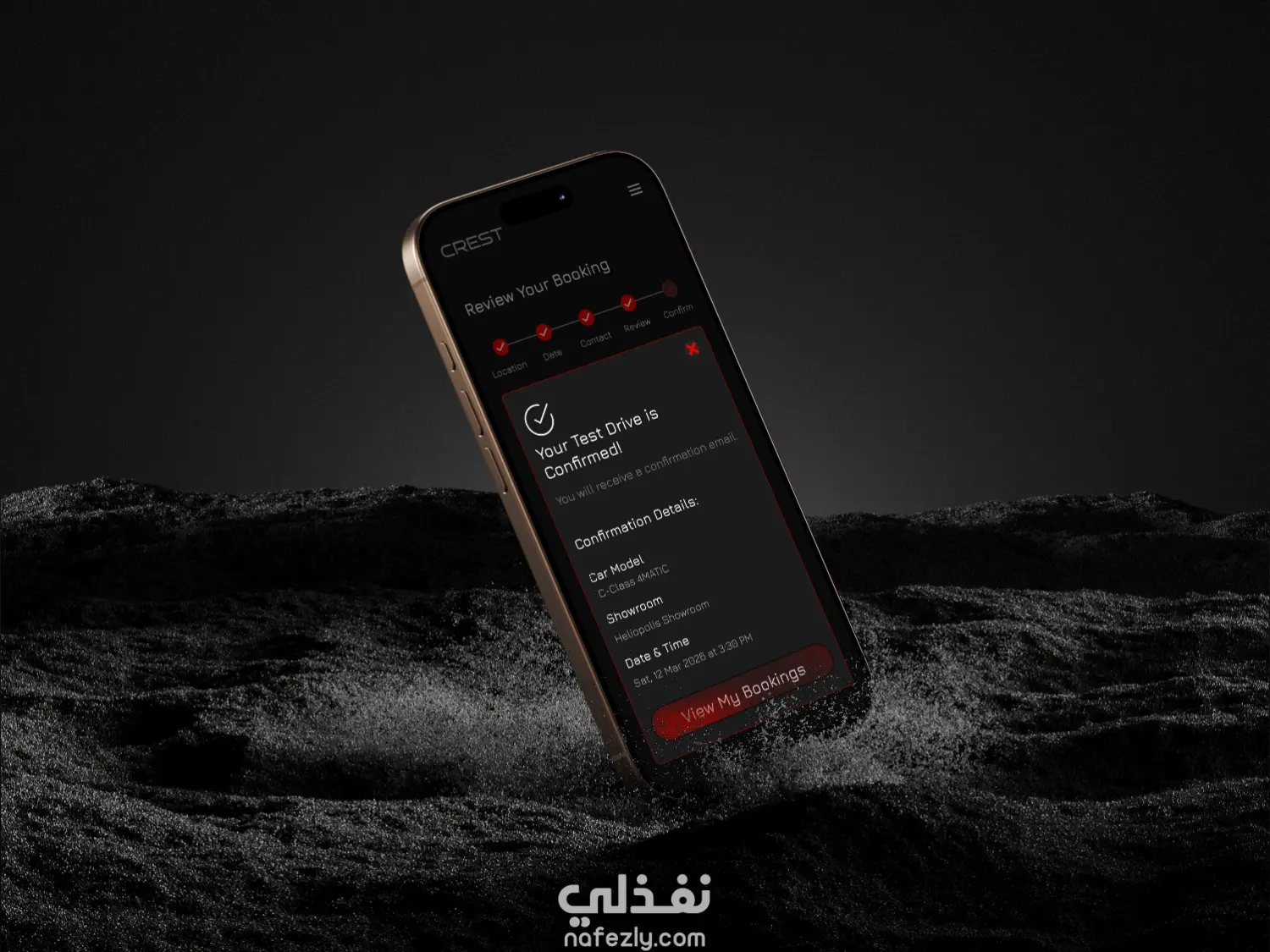 شروع تصميم واجهات وتجربة مستخدم (UI/UX) لتطبيق سيارات فاخر باسم CREST.