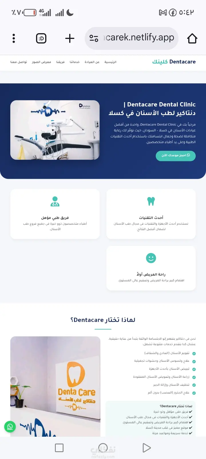 قمتُ بتصميم وتطوير موقع إلكتروني احترافي لعيادة Dentacare Dental Clinic، بهدف تعزيز الحضور الرقمي وتسهيل وصول المرضى إلى خدمات طب الأسنان في مدينة كسلا.
