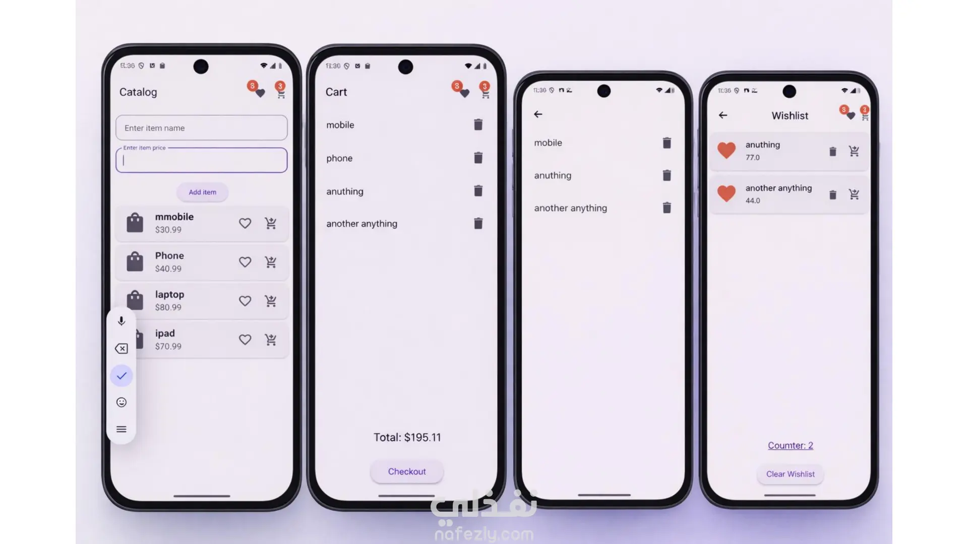 قمت بتصميم وتطوير تطبيق متجر إلكتروني باستخدام واجهة مستخدم بسيطة وسهلة الاستخدام. يتيح التطبيق للمستخدم: إضافة المنتجات إلى السلة حفظ المنتجات في المفضلة (Wishlist) عرض السعر الإجمالي حذف العناصر من السلة أو المفضلة تم التركيز على تجربة المستخدم (UI/UX) وسلاسة التنقل بين الصفحات.