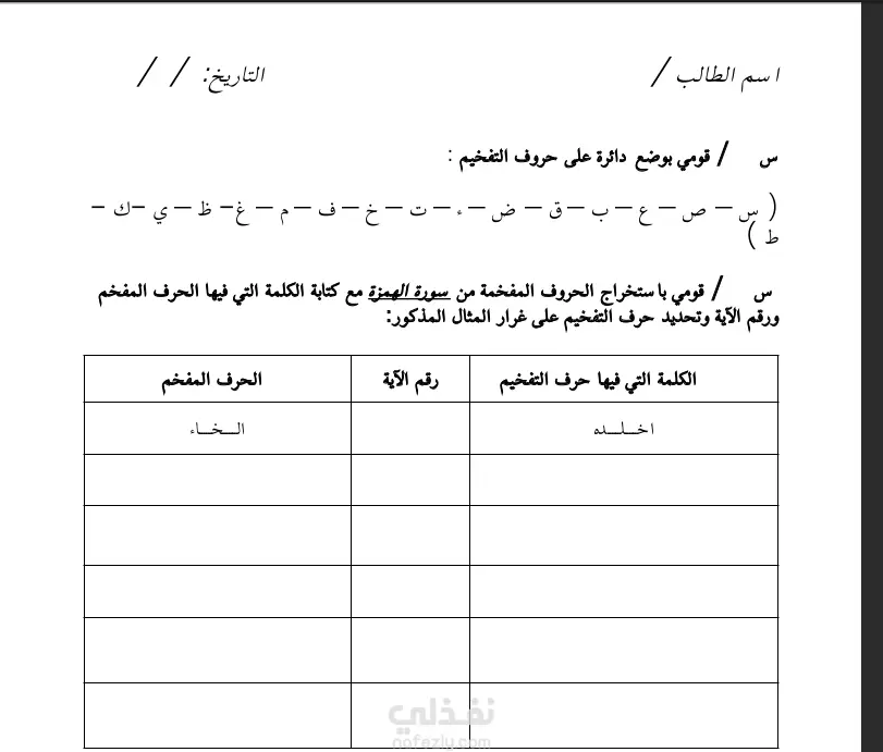 تجهيز امتحانات لدروس مناهج المدرسة والتجويد والقرآن