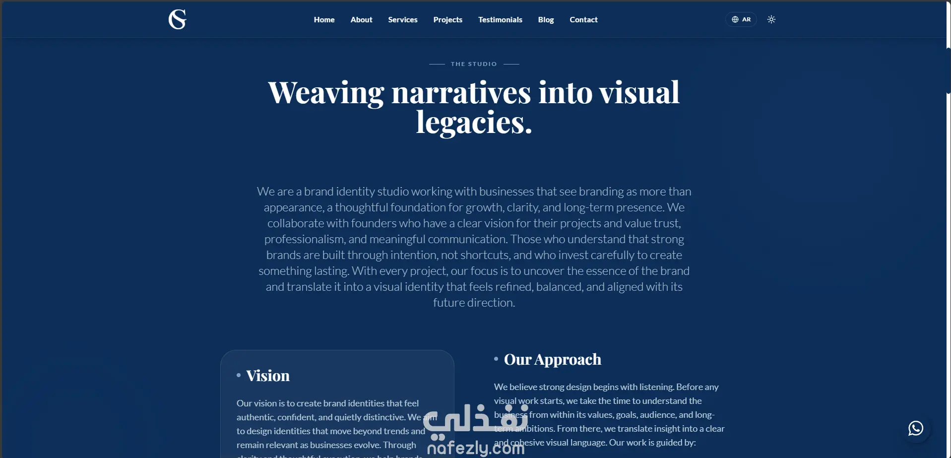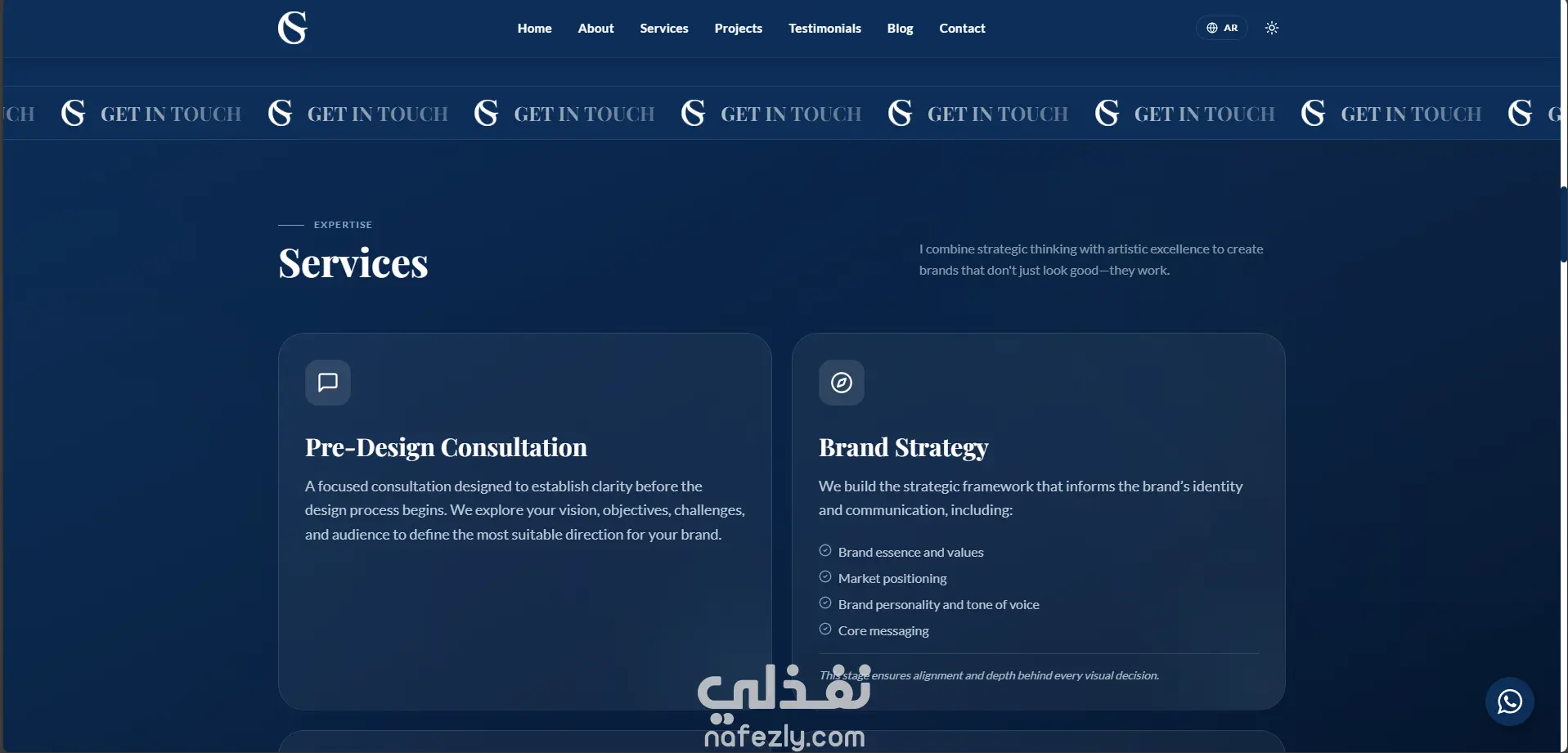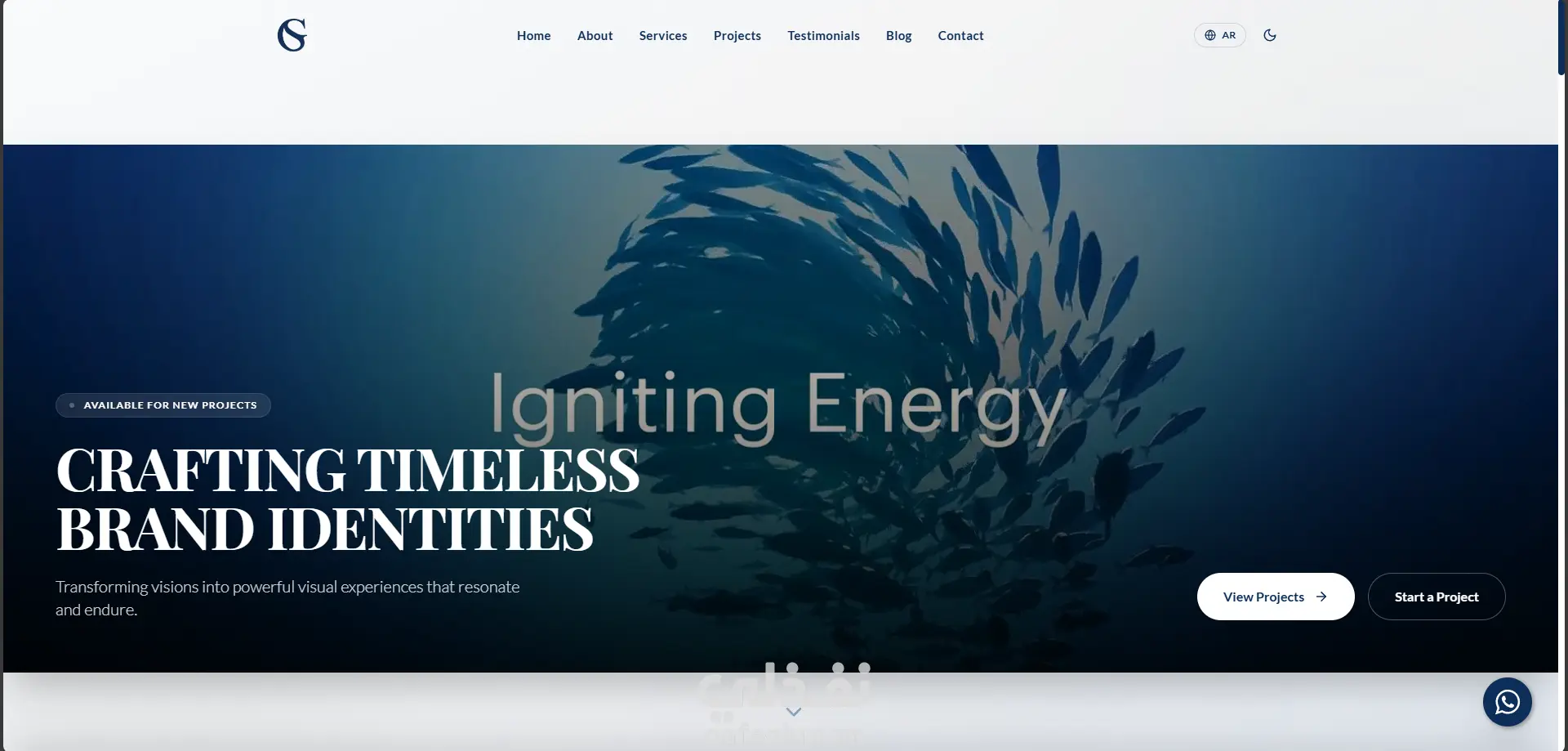 يركّز الموقع على إبراز المشاريع باستخدام أنيميشن وموشن جرافيك متقدمة تجعل الشعارات والهويات تنبض بالحياة داخل البورتفوليو، مع هيكلة محتوى مدروسة تدعم رحلة العميل وتوضح الخدمات بشكل احترافي.