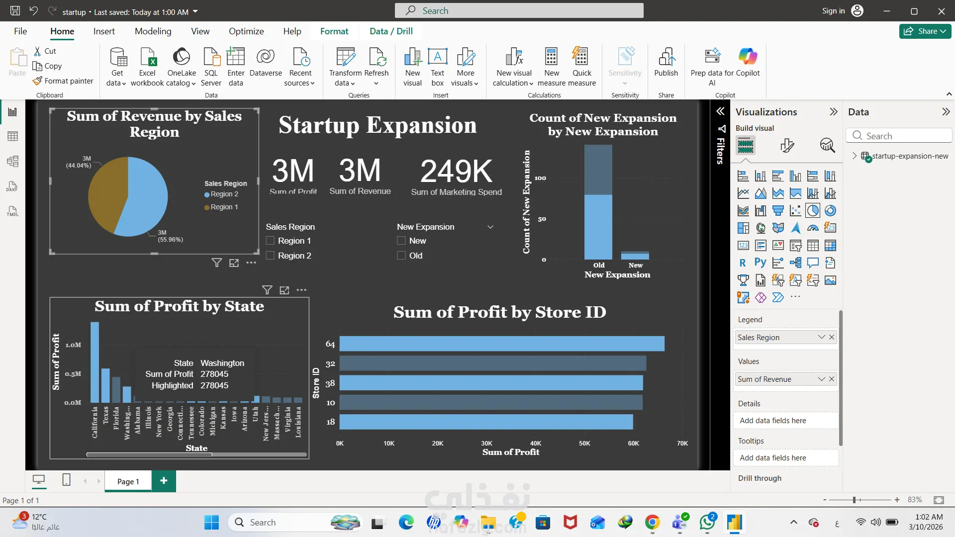 سأقوم بإنشاء لوحة بيانات تفاعلية لتحليل توسع ونمو شركات ناشئة (Startup Expansion) باستخدام Power BI و/أو Excel.