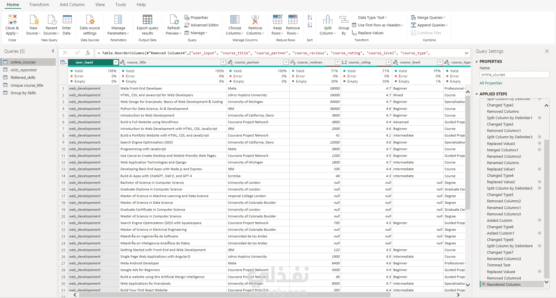 معالجة البيانات: إدارة وتحليل قاعدة بيانات ضخمة تضم أكثر من 10,000 دورة تدريبية، مع ضمان تكامل البيانات وصحة العلاقات بين الجداول (Data Modeling).