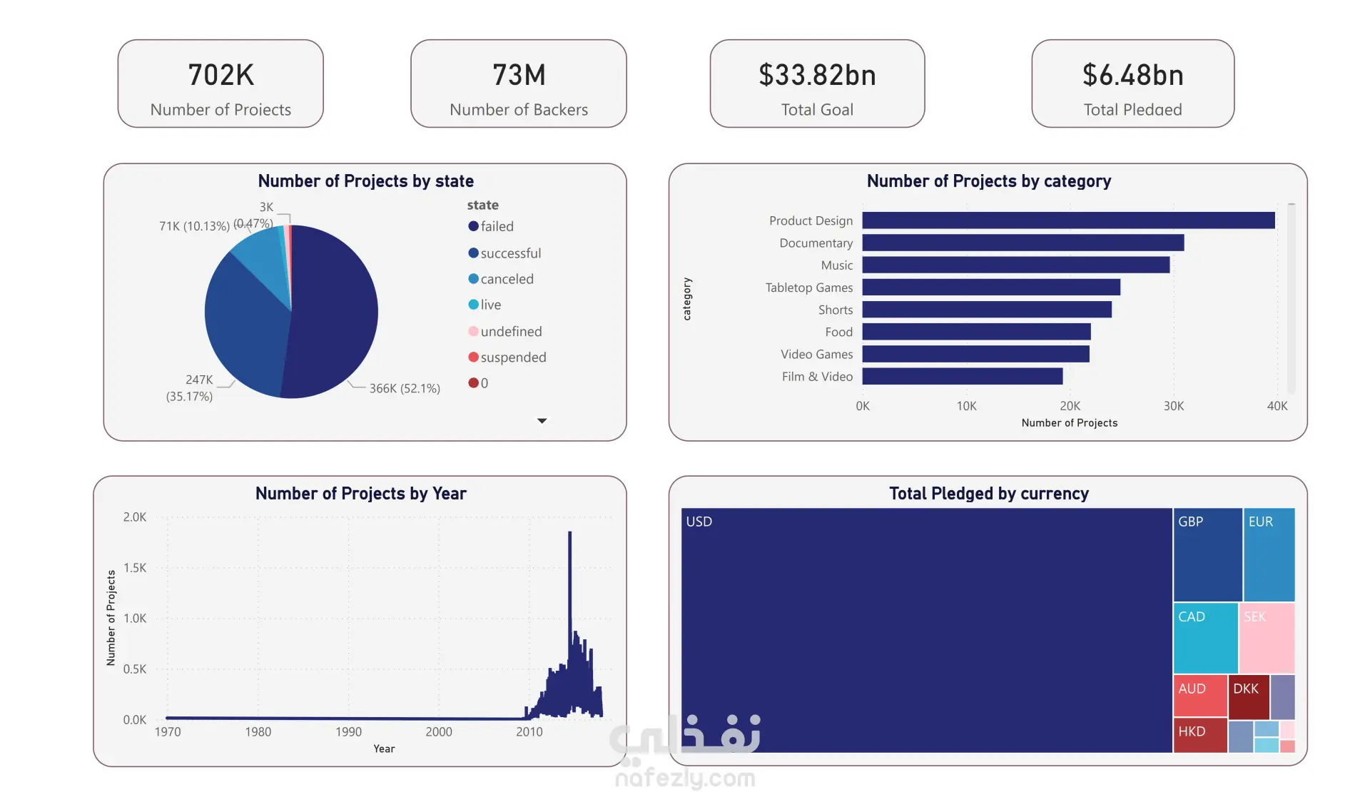 لوحة تحكم تحليل بيانات Kickstarter | Power BI