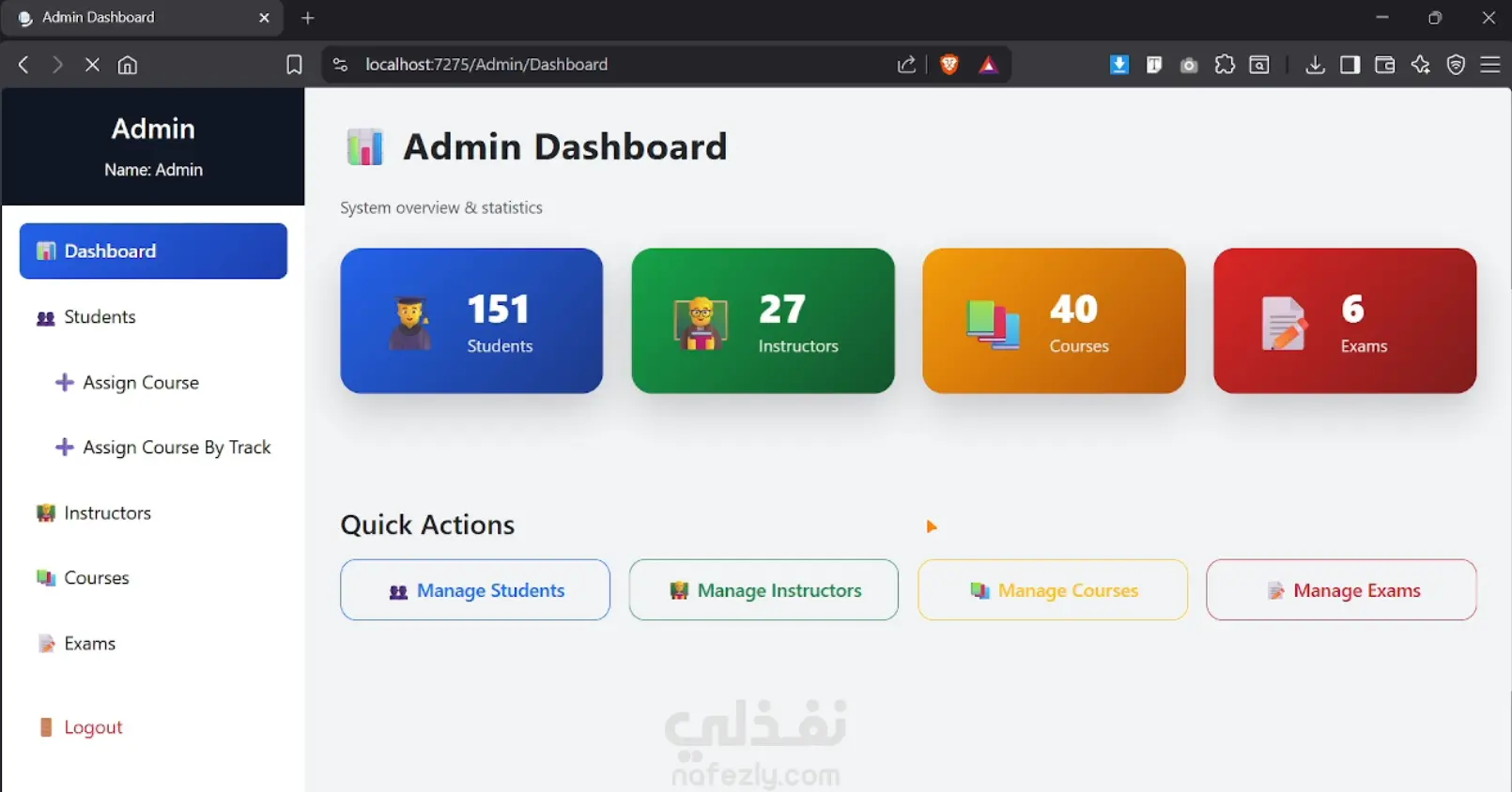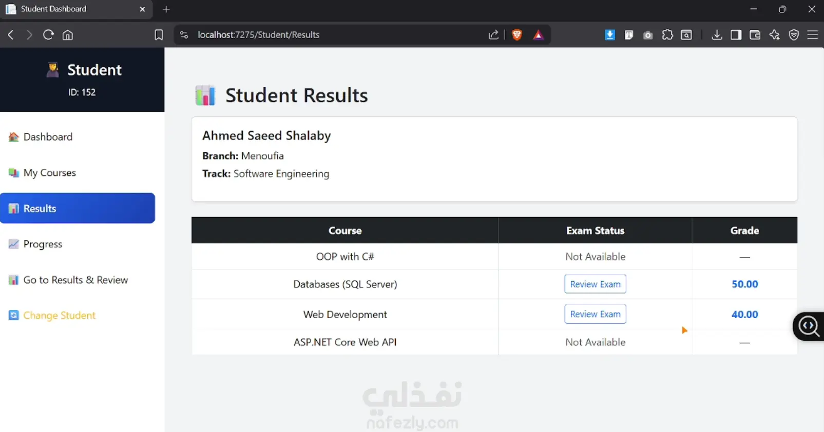 منصة تعليمية متكاملة لإجراء الاختبارات أونلاين، تم تصميمها لخدمة المؤسسات التعليمية بكفاءة وأمان. يتيح النظام للطلاب أداء الاختبارات بسهولة ومتابعة النتائج فوراً، مع توفير لوحة تحكم للإدارة لإدارة الامتحانات والمستخدمين بشكل احترافي. أهم المميزات: - إنشاء وإدارة الاختبارات بسهولة - نظام تصحيح تلقائي وعرض النتائج فور الانتهاء - لوحات تحكم منفصلة (Admin - Student) - حماية من الغش أثناء الامتحان - واجهة استخدام عصرية وسهلة - أداء سريع واستقرار عالي التقنيات المستخدمة: ASP.NET Core MVC - SQL Server - HTML - CSS - JavaScript