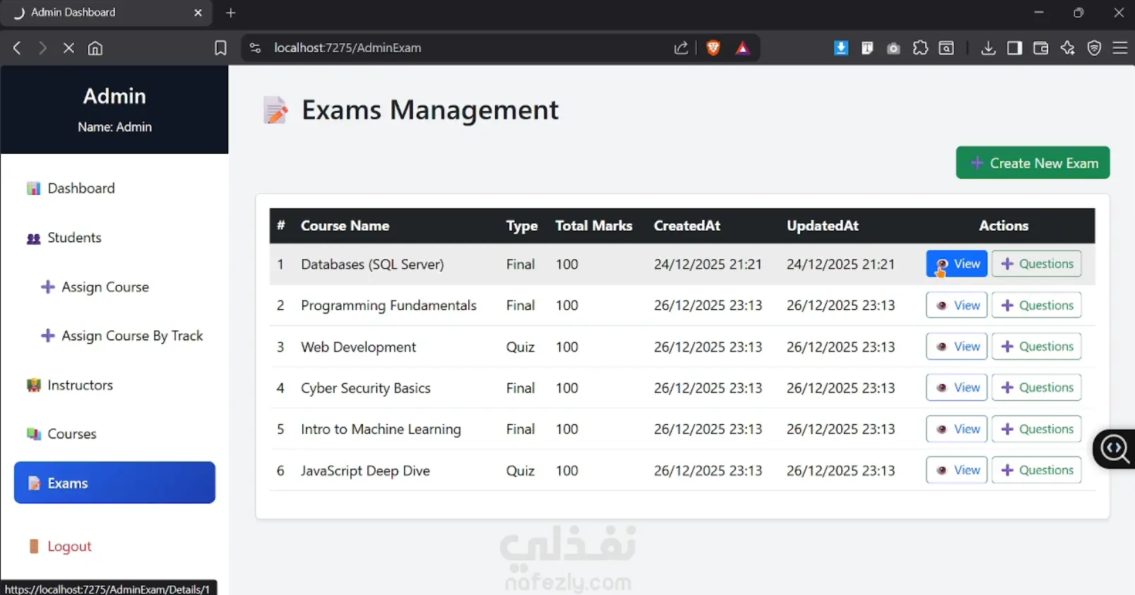 نظام امتحانات أونلاين متكامل مع نظام تصحيح تلقائي ولوحة تحكم