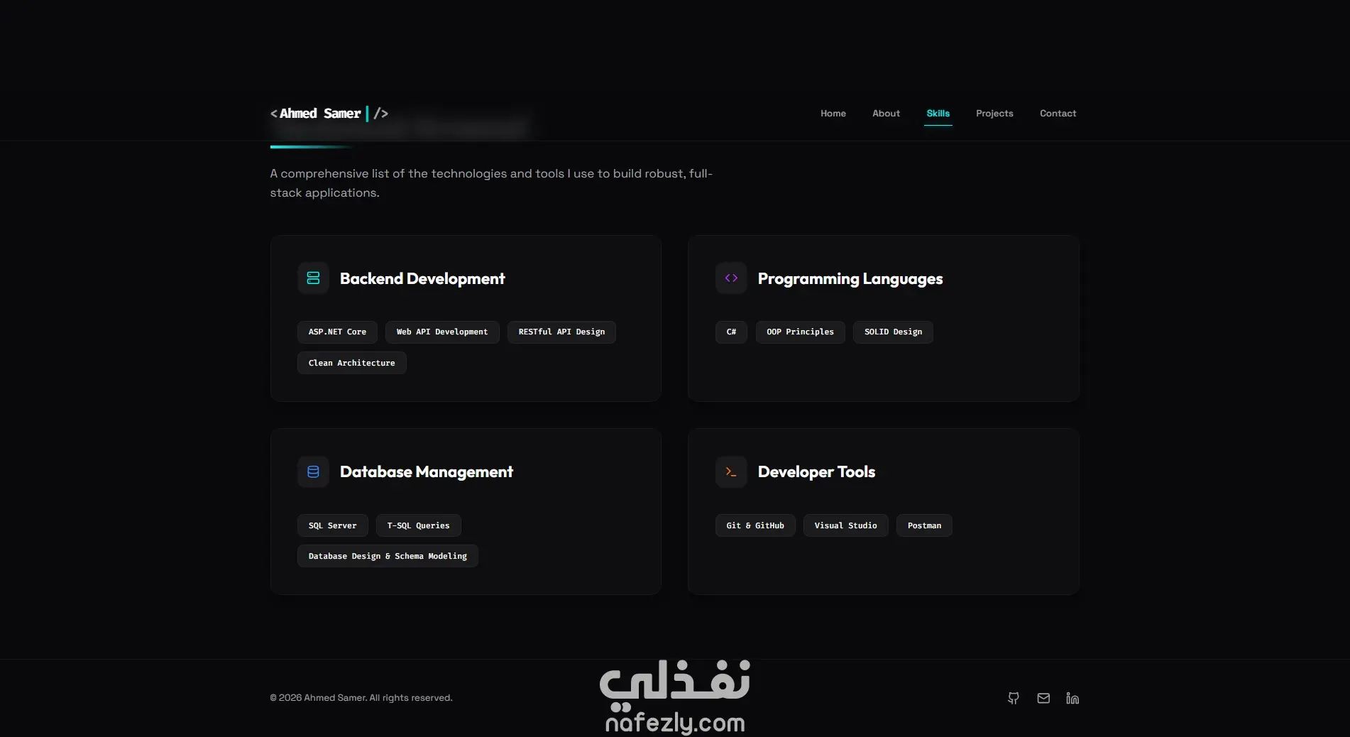 - صفحات منظمة (About - Projects - Contact)