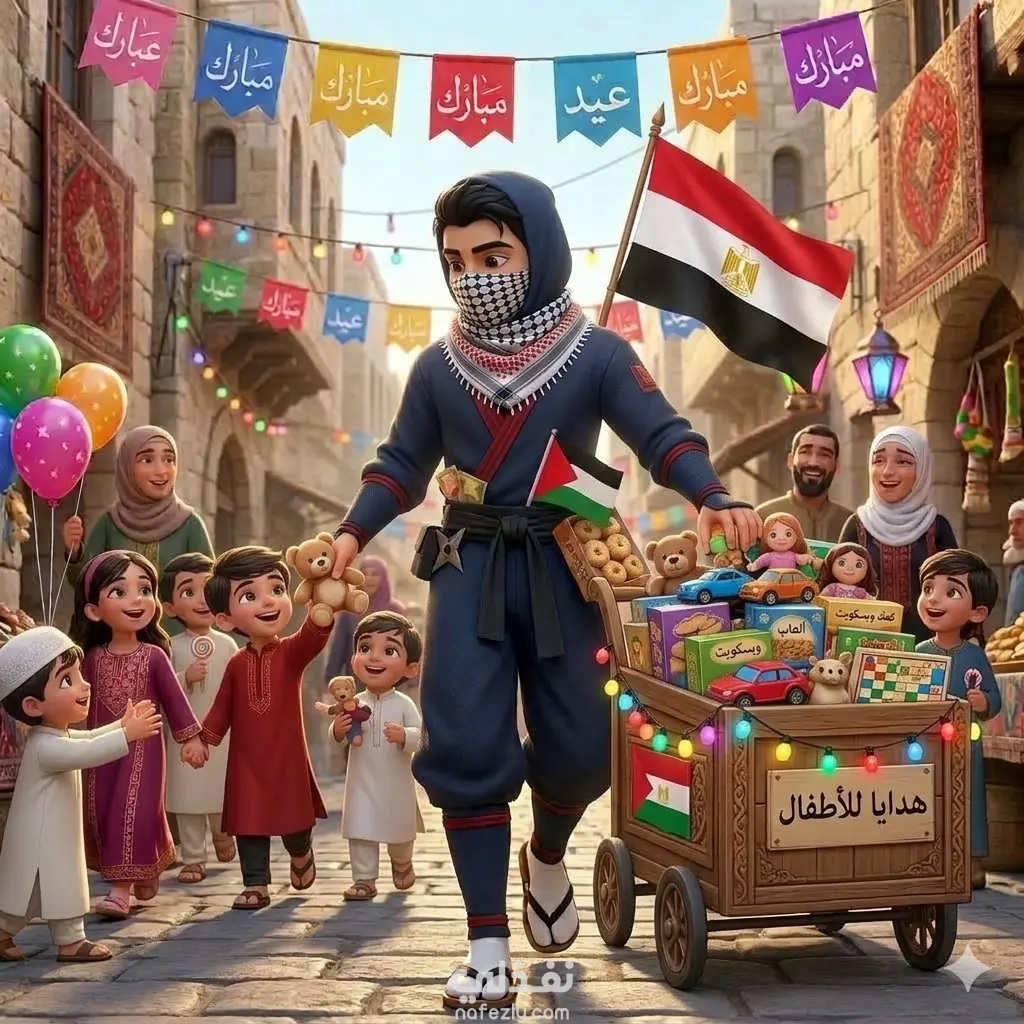 الغرض: تهنئة بالعيد وتذكير بالهوية الوطنية الفلسطينية، وتقديم رسالة تضامن إنسانية بأسلوب مبهج للأطفال والكبار.