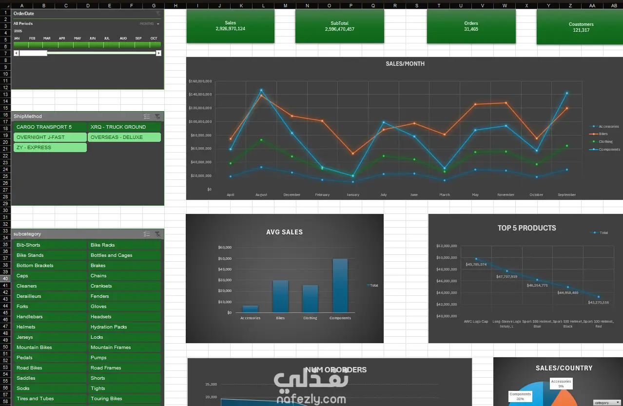 قمت بتصميم لوحة تحكم تفاعلية باستخدام Excel لتحليل بيانات المبيعات خلال فترة زمنية محددة.