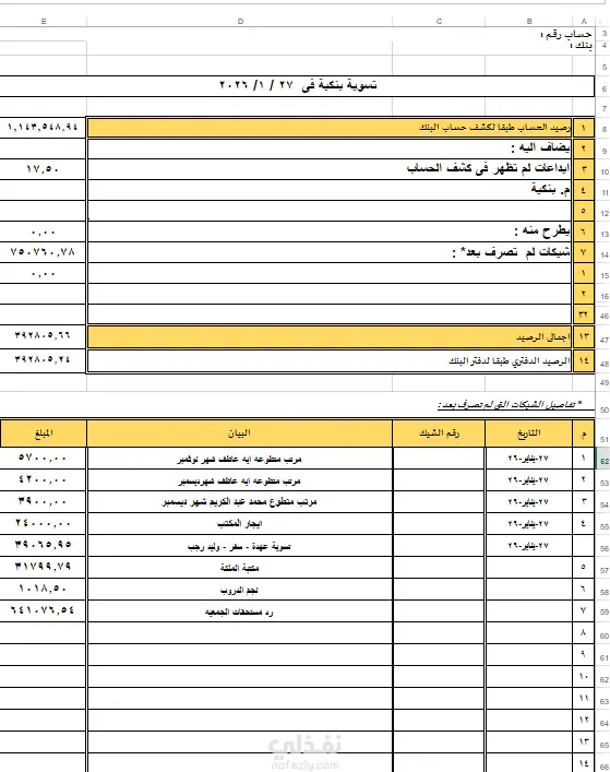 تصميم شيت EXCEL وتسجيل قيود يومية والاستاذ العام والتسويات البنكية واعداد ميزان المراجعة وادخال البيانات والعمل علي أنظمة EPR