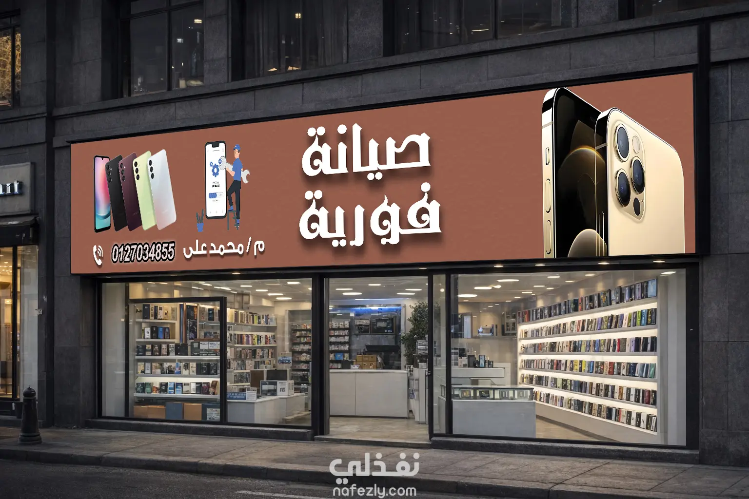 قمت بتصميم يافطة رقمية احترافية لمتجر هواتف ذكية، بهدف تعزيز حضوره البصري وجذب العملاء بفاعلية. حرصت على أن يجمع التصميم بين الواقعية والجاذبية البصرية، ليكون قابلاً للعرض على واجهة المحل بشكل مثالي ومتناسق مع بيئته المحيطة، ويبرز خدمات المتجر المتنوعة بوضوح وكفاءة.