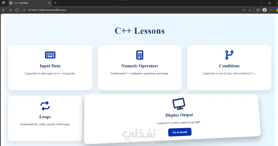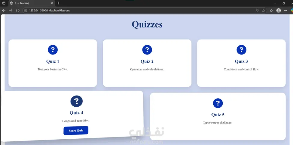 موقع تعليمي مخصص لتعلم لغة البرمجة C++ من الصفر حتى الاحتراف بطريقة سهلة ومبسطة تناسب المبتدئين. يقدم الموقع شرحًا منظمًا للمفاهيم الأساسية في البرمجة مثل المتغيرات، الجمل الشرطية، الحلقات، والدوال، مع تطبيقات عملية وأمثلة توضيحية تساعد على الفهم والتدريب. كما يحتوي الموقع على كويزات (Quizzes) بعد كل درس لتقييم مستوى المتعلم والتأكد من فهمه للمحتوى بشكل صحيح، مما يساعد على تثبيت المعلومات وتحسين المهارات بشكل تدريجي. يهدف الموقع إلى مساعدة المتعلمين على بناء أساس قوي في البرمجة وتطوير مهاراتهم من خلال التعلم التدريجي والتطبيق العملي. الموقع مناسب للطلاب والمبتدئين في مجال البرمجة، ويُعد خطوة أولى قوية لدخول عالم تطوير البرمجيات.