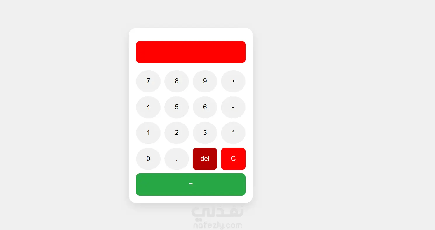 اله حاسبه لاجراء عمليات حسابيه عند الضغط على اى زر يظهر رقم ع شاشه العرض وعند الضغط على زر المسح يتم مسح كل اللى موجود على الشاشه