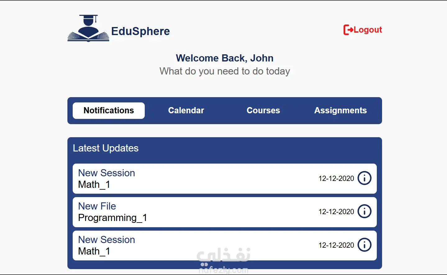تصميم وتنفيذ صفحات واجهة المستخدم لمنصة eduSpher التعليمية باستخدام HTML و CSSو JavaScript، مع التركيز على تجربة مستخدم سهلة وتصميم عصري متجاوب مع جميع الأجهزة.