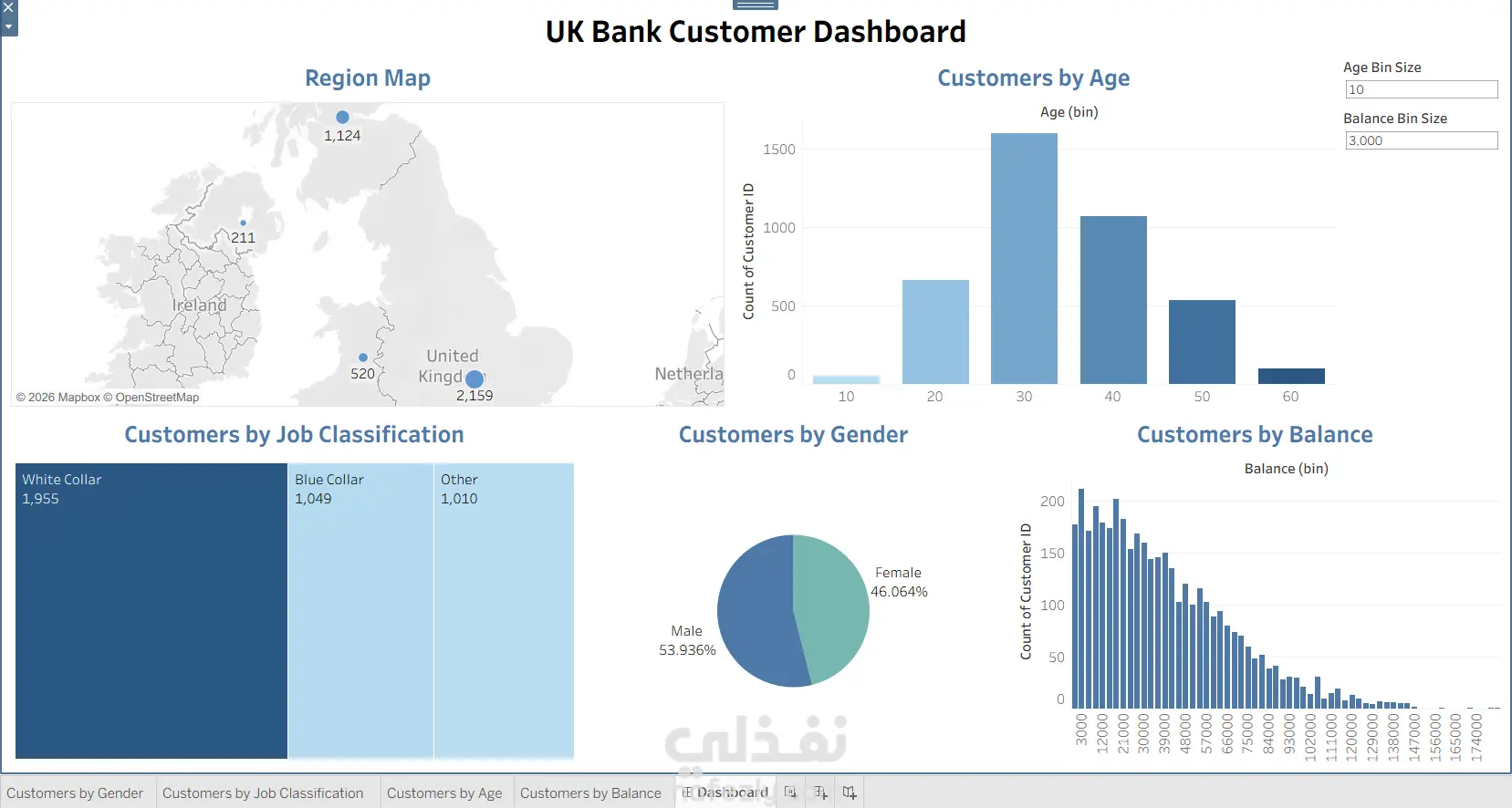 تصميم Dashboard تفاعلي لتحليل بيانات عملاء البنوك باستخدام Tableau